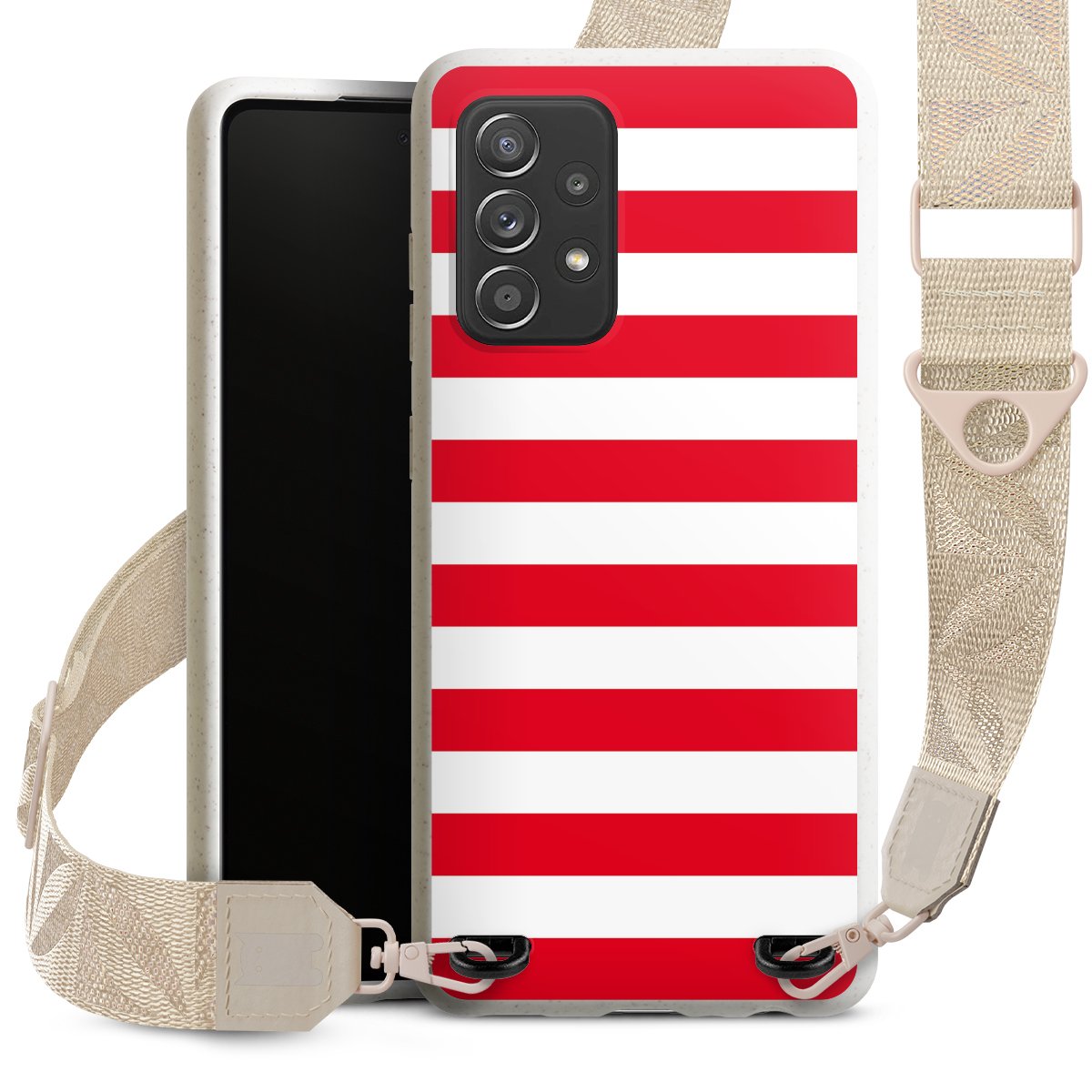 Gestalte Dein Case ganz nach Deinen Wünschen! Edles Creme oder lieber klassisches Schwarz? Du entscheidest, welche Farbe am besten zu Dir passt. Die dezenten Designs der Gurtbänder passen garantiert zu Deiner Hülle, egal mit welchem Lieblingsmotiv Du Dein Case bedrucken lässt.