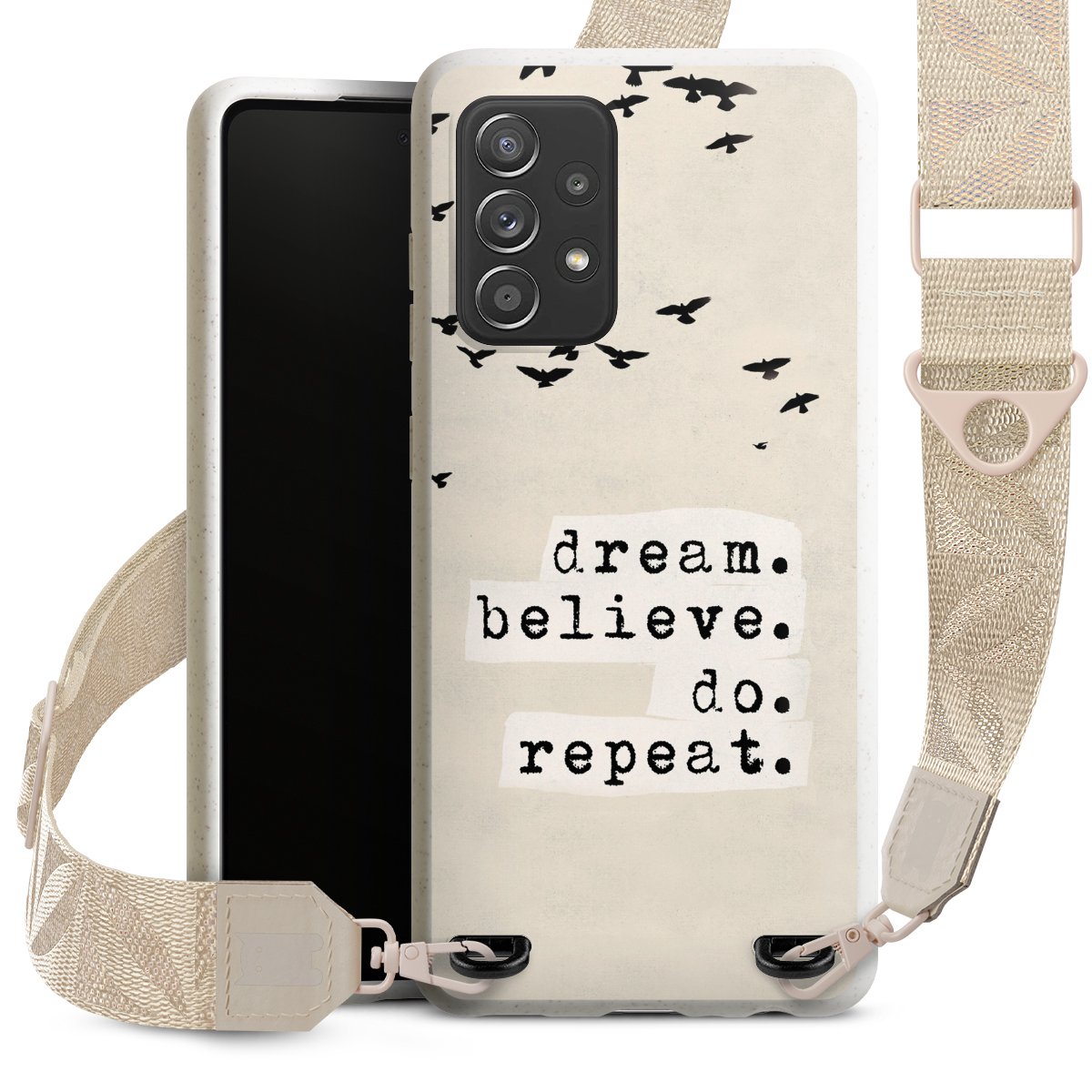 Gestalte Dein Case ganz nach Deinen Wünschen! Edles Creme oder lieber klassisches Schwarz? Du entscheidest, welche Farbe am besten zu Dir passt. Die dezenten Designs der Gurtbänder passen garantiert zu Deiner Hülle, egal mit welchem Lieblingsmotiv Du Dein Case bedrucken lässt.