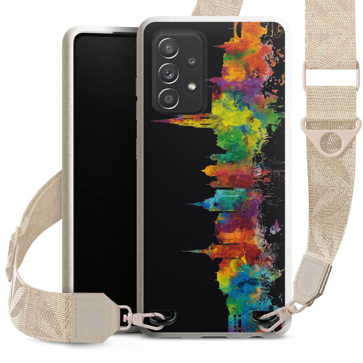 Gestalte Dein Case ganz nach Deinen Wünschen! Edles Creme oder lieber klassisches Schwarz? Du entscheidest, welche Farbe am besten zu Dir passt. Die dezenten Designs der Gurtbänder passen garantiert zu Deiner Hülle, egal mit welchem Lieblingsmotiv Du Dein Case bedrucken lässt.