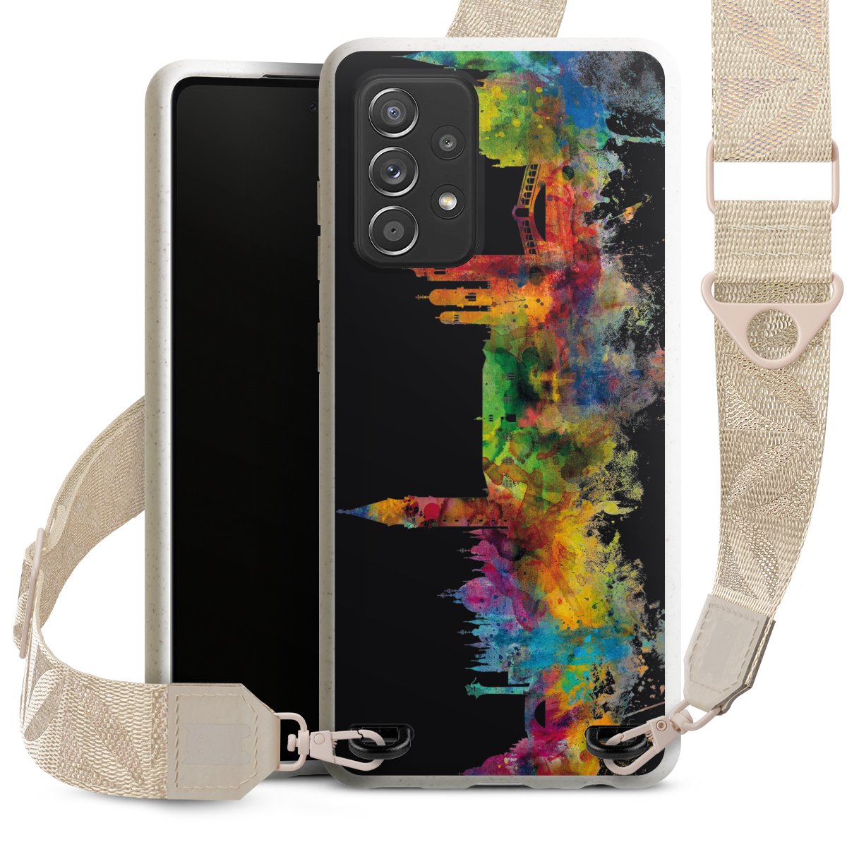 Gestalte Dein Case ganz nach Deinen Wünschen! Edles Creme oder lieber klassisches Schwarz? Du entscheidest, welche Farbe am besten zu Dir passt. Die dezenten Designs der Gurtbänder passen garantiert zu Deiner Hülle, egal mit welchem Lieblingsmotiv Du Dein Case bedrucken lässt.