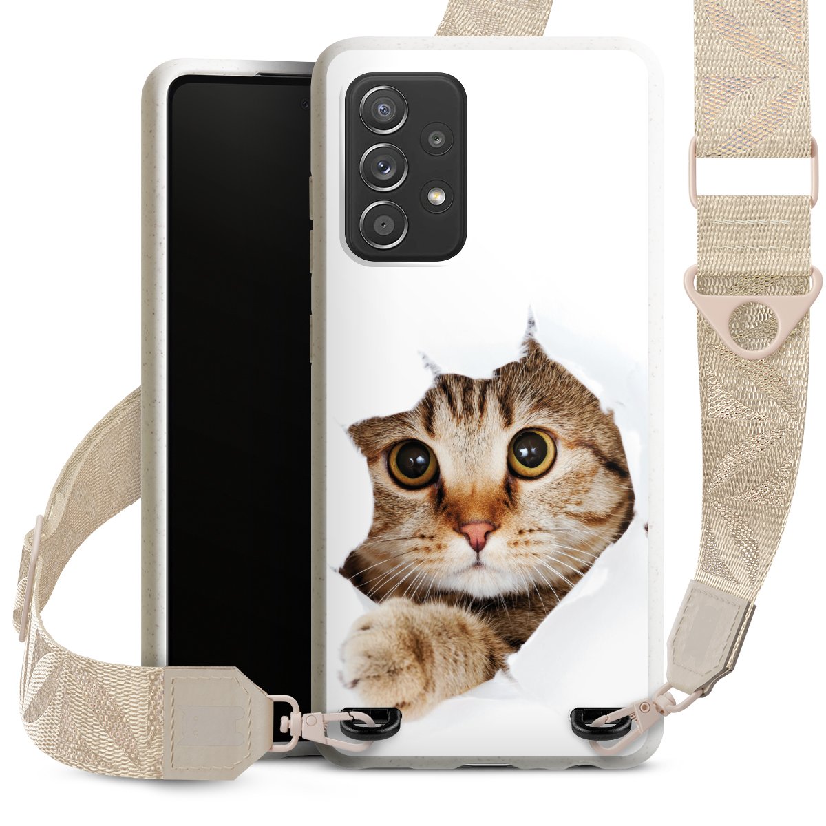 Gestalte Dein Case ganz nach Deinen Wünschen! Edles Creme oder lieber klassisches Schwarz? Du entscheidest, welche Farbe am besten zu Dir passt. Die dezenten Designs der Gurtbänder passen garantiert zu Deiner Hülle, egal mit welchem Lieblingsmotiv Du Dein Case bedrucken lässt.