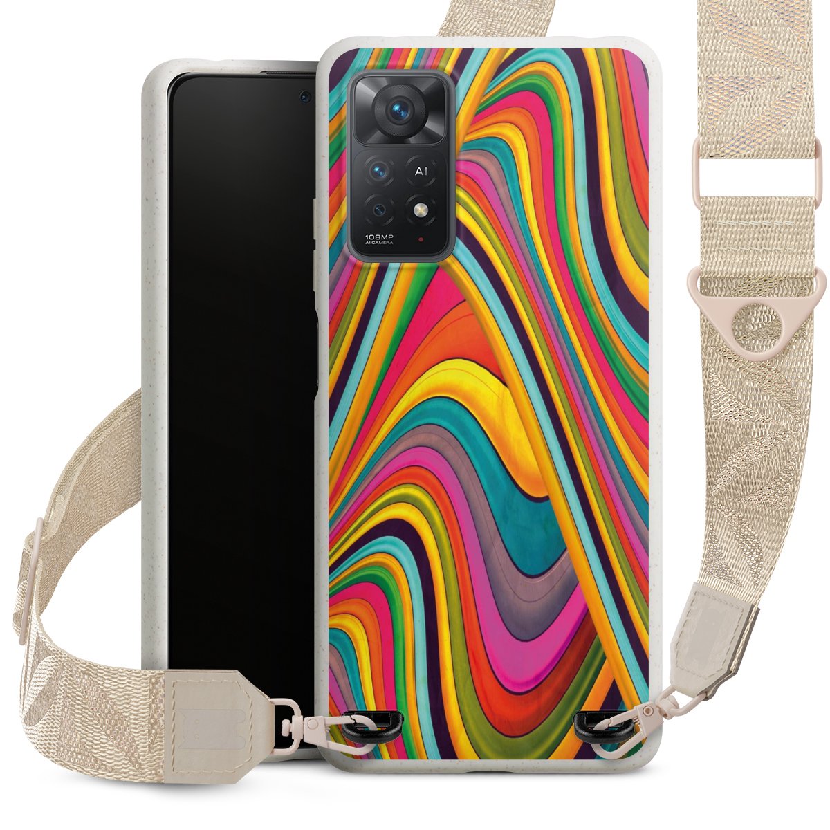 Gestalte Dein Case ganz nach Deinen Wünschen! Edles Creme oder lieber klassisches Schwarz? Du entscheidest, welche Farbe am besten zu Dir passt. Die dezenten Designs der Gurtbänder passen garantiert zu Deiner Hülle, egal mit welchem Lieblingsmotiv Du Dein Case bedrucken lässt.