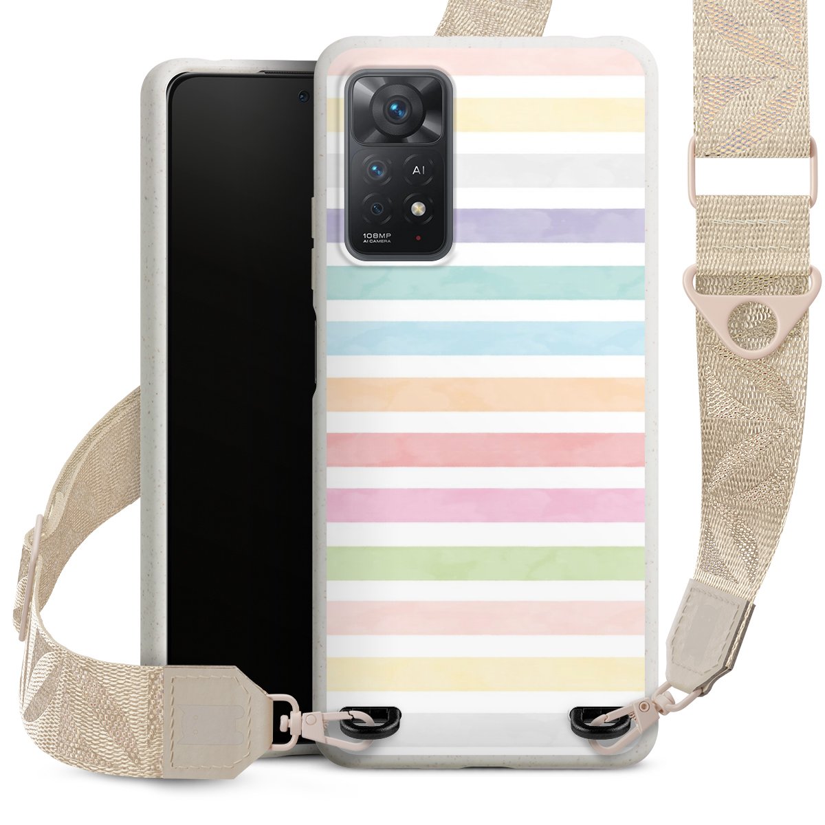 Gestalte Dein Case ganz nach Deinen Wünschen! Edles Creme oder lieber klassisches Schwarz? Du entscheidest, welche Farbe am besten zu Dir passt. Die dezenten Designs der Gurtbänder passen garantiert zu Deiner Hülle, egal mit welchem Lieblingsmotiv Du Dein Case bedrucken lässt.