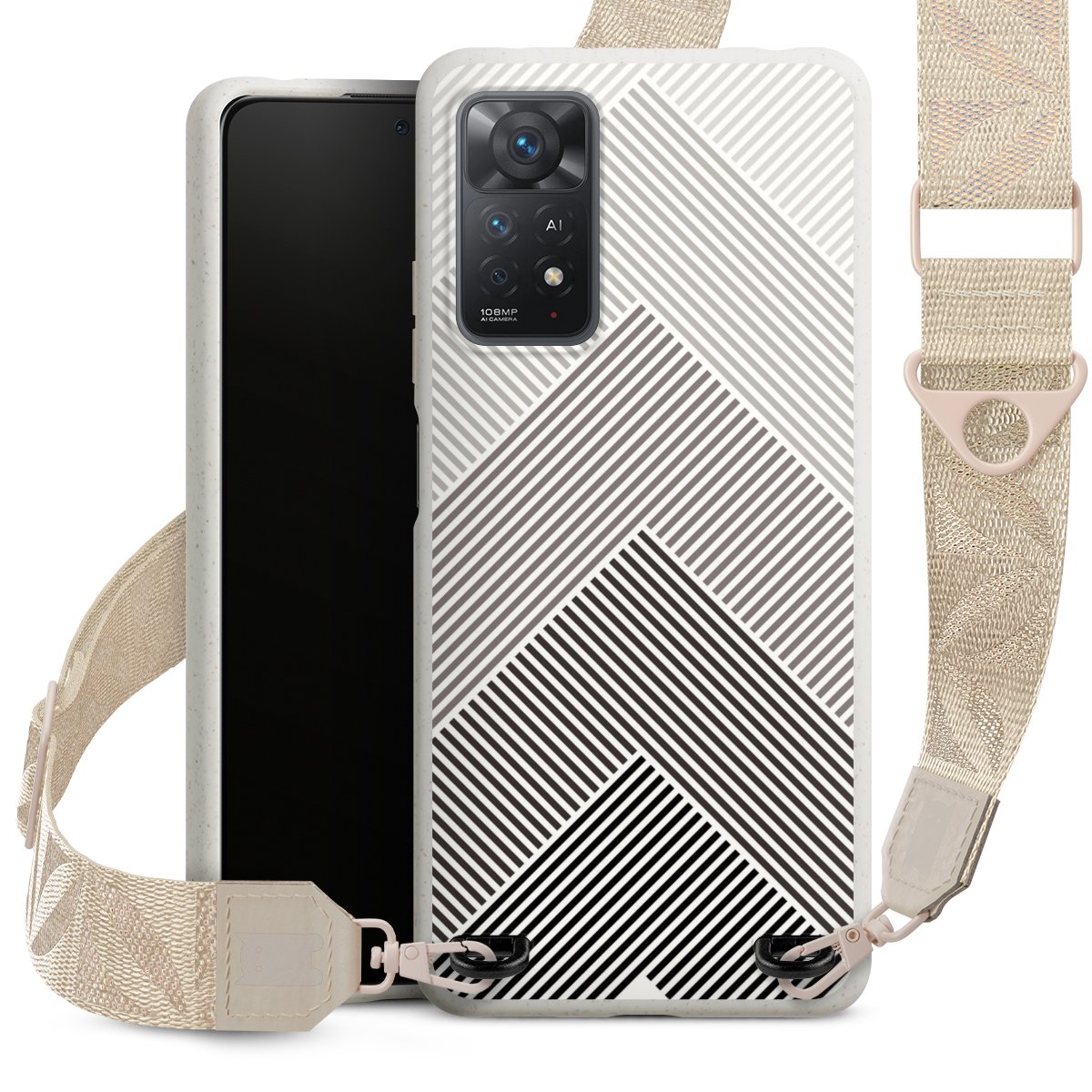 Gestalte Dein Case ganz nach Deinen Wünschen! Edles Creme oder lieber klassisches Schwarz? Du entscheidest, welche Farbe am besten zu Dir passt. Die dezenten Designs der Gurtbänder passen garantiert zu Deiner Hülle, egal mit welchem Lieblingsmotiv Du Dein Case bedrucken lässt.