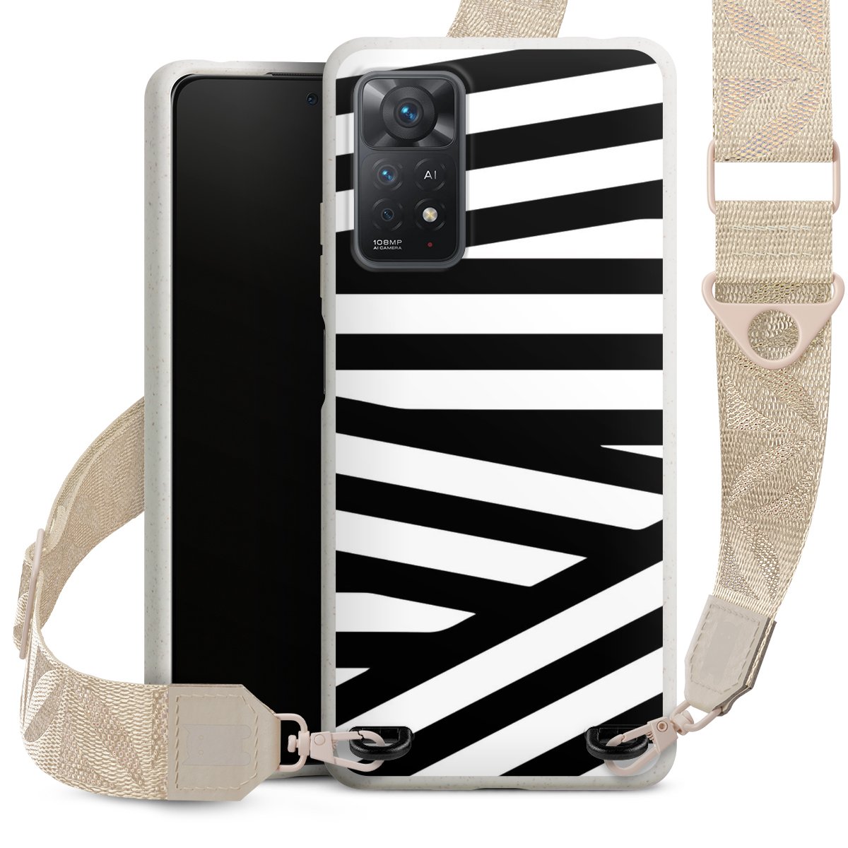Gestalte Dein Case ganz nach Deinen Wünschen! Edles Creme oder lieber klassisches Schwarz? Du entscheidest, welche Farbe am besten zu Dir passt. Die dezenten Designs der Gurtbänder passen garantiert zu Deiner Hülle, egal mit welchem Lieblingsmotiv Du Dein Case bedrucken lässt.