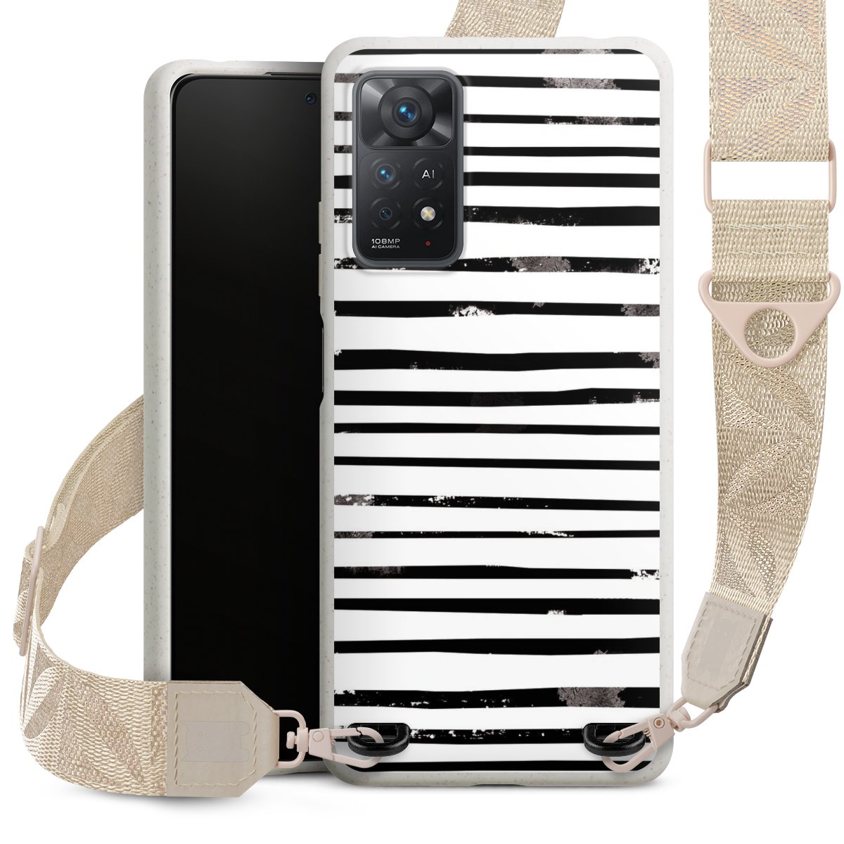 Gestalte Dein Case ganz nach Deinen Wünschen! Edles Creme oder lieber klassisches Schwarz? Du entscheidest, welche Farbe am besten zu Dir passt. Die dezenten Designs der Gurtbänder passen garantiert zu Deiner Hülle, egal mit welchem Lieblingsmotiv Du Dein Case bedrucken lässt.