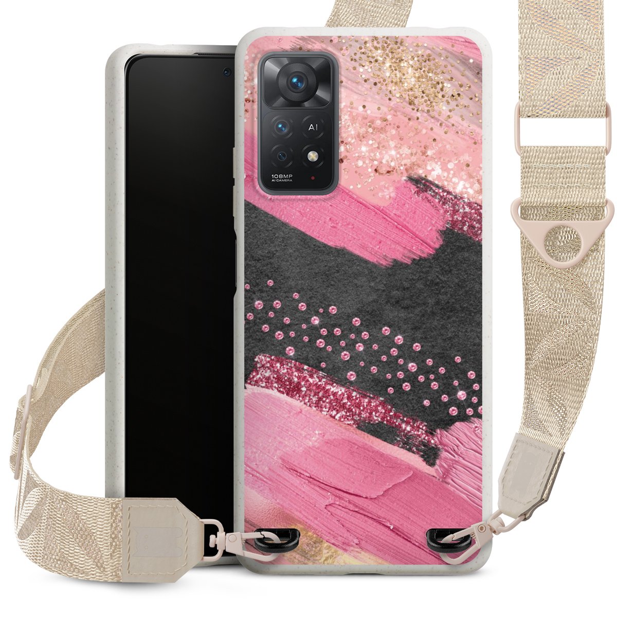 Gestalte Dein Case ganz nach Deinen Wünschen! Edles Creme oder lieber klassisches Schwarz? Du entscheidest, welche Farbe am besten zu Dir passt. Die dezenten Designs der Gurtbänder passen garantiert zu Deiner Hülle, egal mit welchem Lieblingsmotiv Du Dein Case bedrucken lässt.