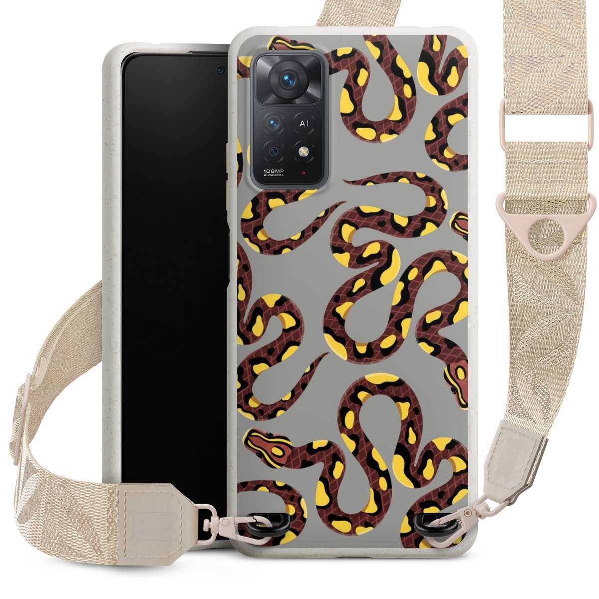 Gestalte Dein Case ganz nach Deinen Wünschen! Edles Creme oder lieber klassisches Schwarz? Du entscheidest, welche Farbe am besten zu Dir passt. Die dezenten Designs der Gurtbänder passen garantiert zu Deiner Hülle, egal mit welchem Lieblingsmotiv Du Dein Case bedrucken lässt.