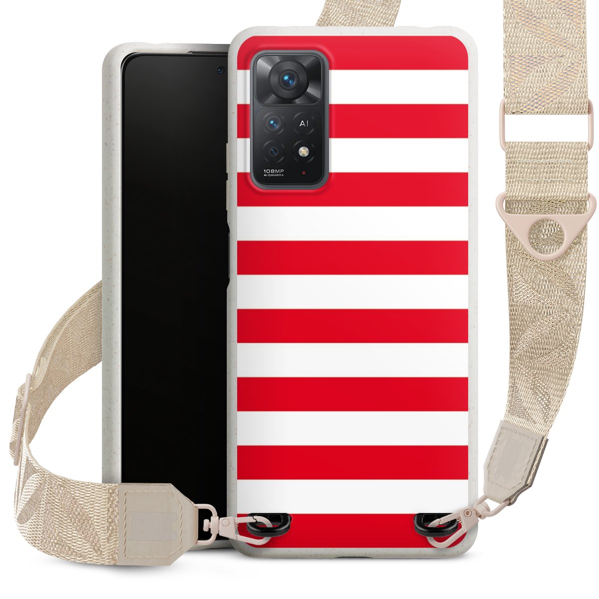 Gestalte Dein Case ganz nach Deinen Wünschen! Edles Creme oder lieber klassisches Schwarz? Du entscheidest, welche Farbe am besten zu Dir passt. Die dezenten Designs der Gurtbänder passen garantiert zu Deiner Hülle, egal mit welchem Lieblingsmotiv Du Dein Case bedrucken lässt.