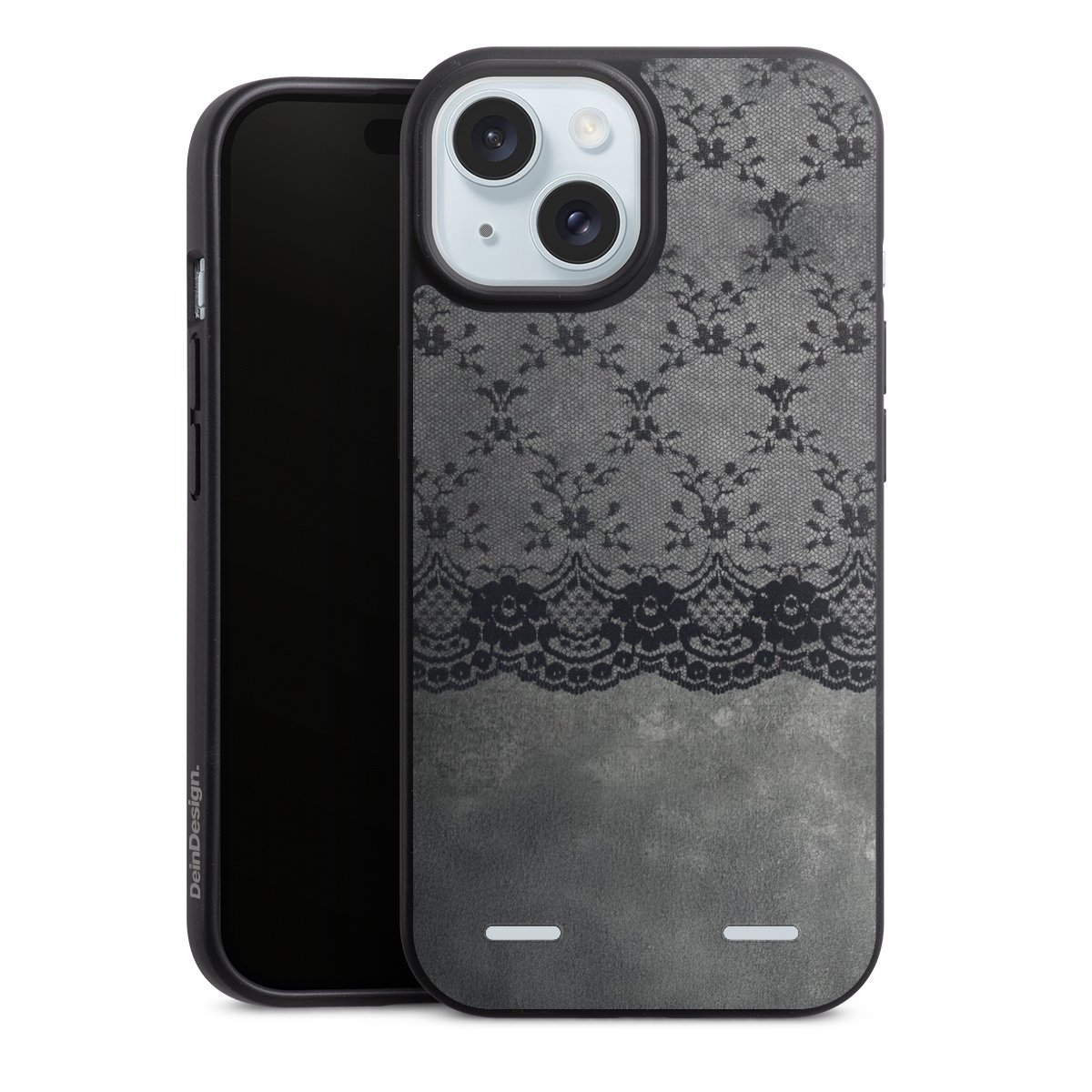 Schwarzes Spitzenmuster auf grauem Hintergrund