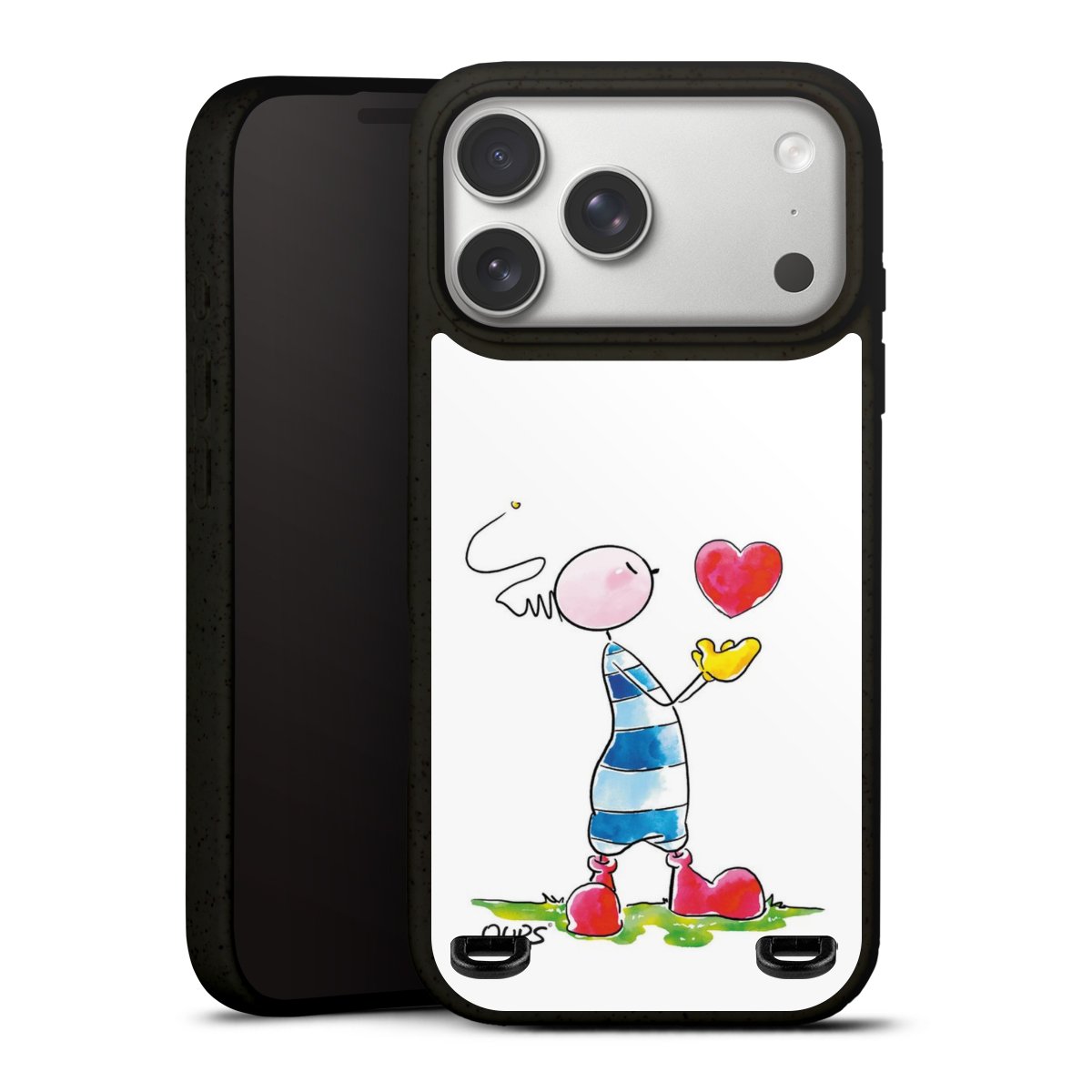 Dank der Ösen auf der Rückseite kannst Du dein Organic Carry Case mit einem Carry Case Band deiner Wahl kombinieren. Unter unseren Gurtbändern aus recycelten Materialien oder den farbigen Stoffkordeln findest dgenau das Richtige für Deinen Stil und Dein Druckmotiv.