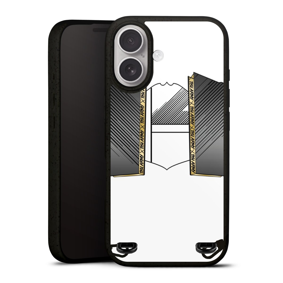 Dank der Ösen auf der Rückseite kannst Du dein Organic Carry Case mit einem Carry Case Band deiner Wahl kombinieren. Unter unseren Gurtbändern aus recycelten Materialien oder den farbigen Stoffkordeln findest dgenau das Richtige für Deinen Stil und Dein Druckmotiv.