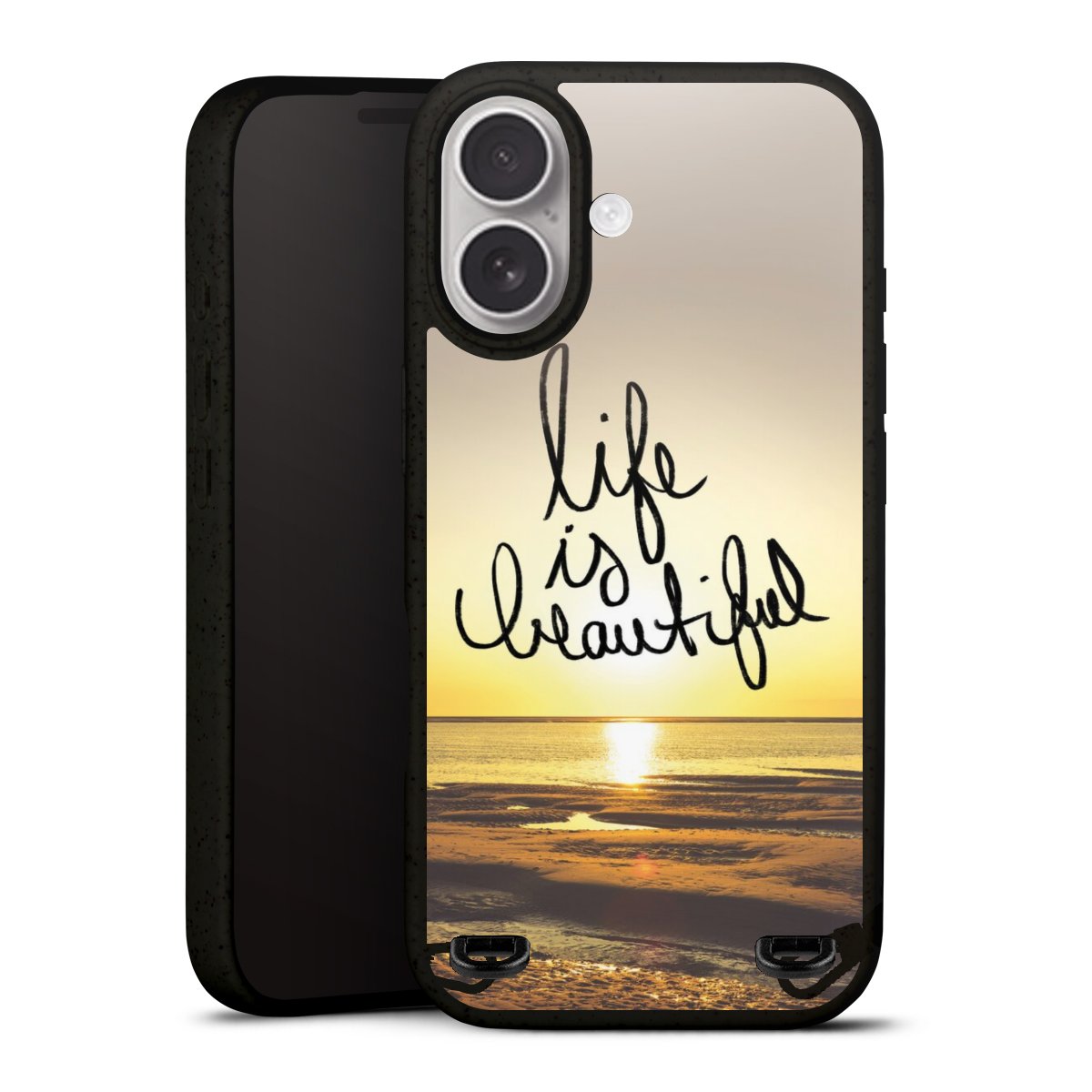 Dank der Ösen auf der Rückseite kannst Du dein Organic Carry Case mit einem Carry Case Band deiner Wahl kombinieren. Unter unseren Gurtbändern aus recycelten Materialien oder den farbigen Stoffkordeln findest dgenau das Richtige für Deinen Stil und Dein Druckmotiv.