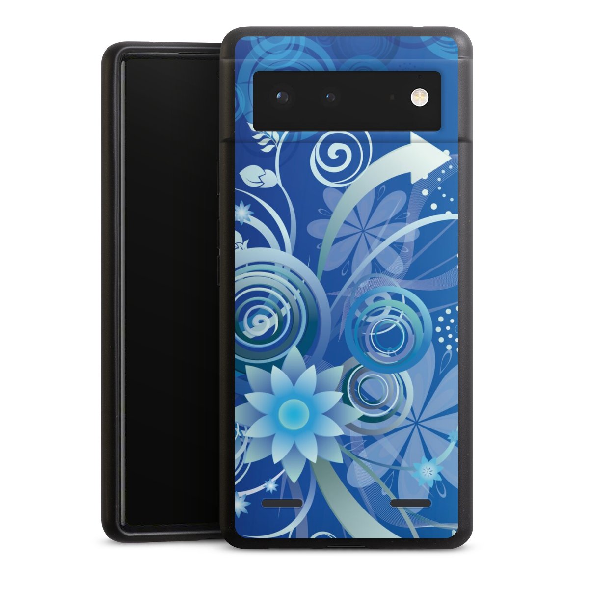 Blumen und Wirbel blau