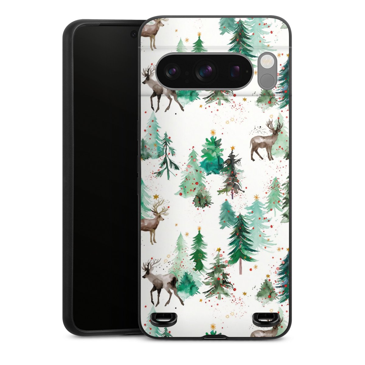 Hirsche und Winterweihnachtsbäume