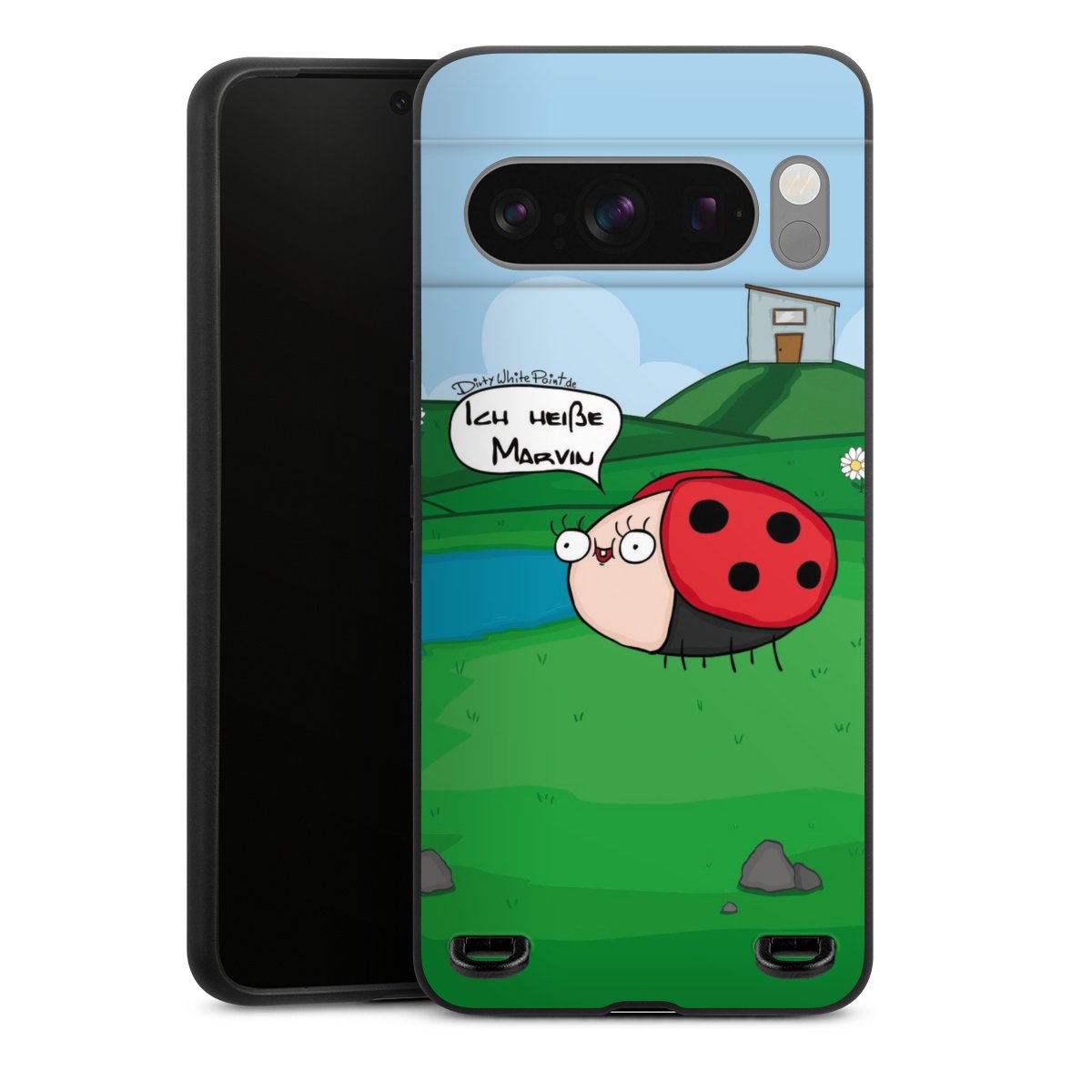 Ob Du Dich nun für Marvin, Günther das Schaf oder doch lieber für die dauerbekiffte Cannabiene entscheidest. Mit einem Motiv von DirtyWhitePaint wird Dein Smartphonen selbst zum Comic.