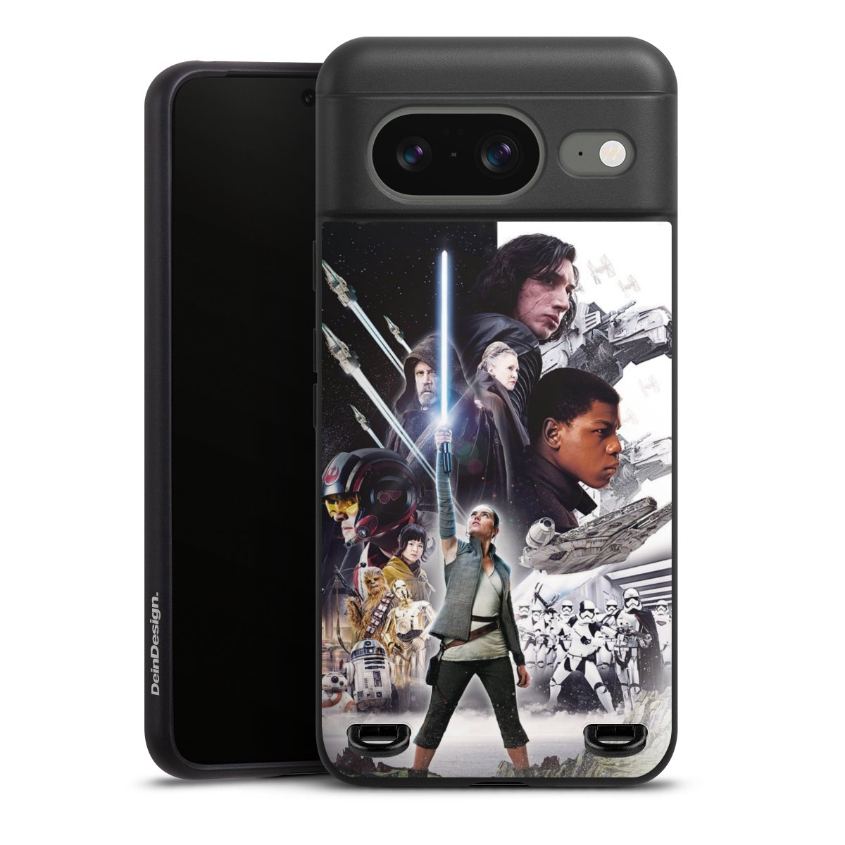 Darth Vader, C3PO, R2D2 und Meister Yoda findest Du in unserem Star Wars Shop auf DeinDesign. Natürlich gibt es auch Star Wars Handyhüllen mit den legendären Charakteren Luke Skywalker, Prinzessin Leia und Han Solo, den Helden der ersten Saga. Wer jedoch die Hauptfiguren der neuen Star Wars Filme ins Herz geschlossen hat, kann auch Finn und Rey mit ihren mächtigen Waffen auf der Rückseite seines Smartphones haben. Die vielseitigen Schutzhüllen in verschiedenen Ausführungen sind das perfekte Geschenk für alle Star Wars Fans, die ihrem Smartphone eine individuelle Note verleihen wollen.