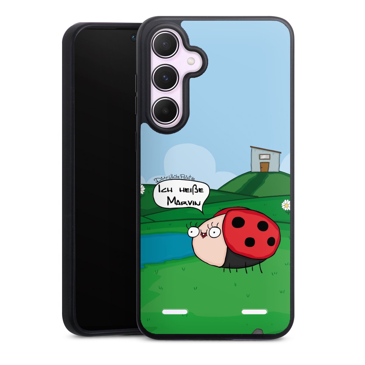 Ob Du Dich nun für Marvin, Günther das Schaf oder doch lieber für die dauerbekiffte Cannabiene entscheidest. Mit einem Motiv von DirtyWhitePaint wird Dein Smartphonen selbst zum Comic.