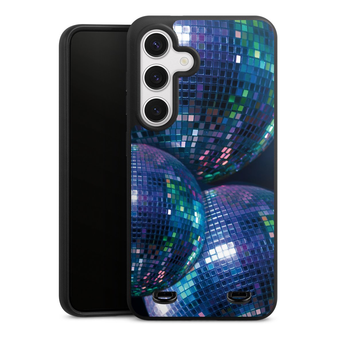 Discokugel Blau Schwarz Partytime mit KI