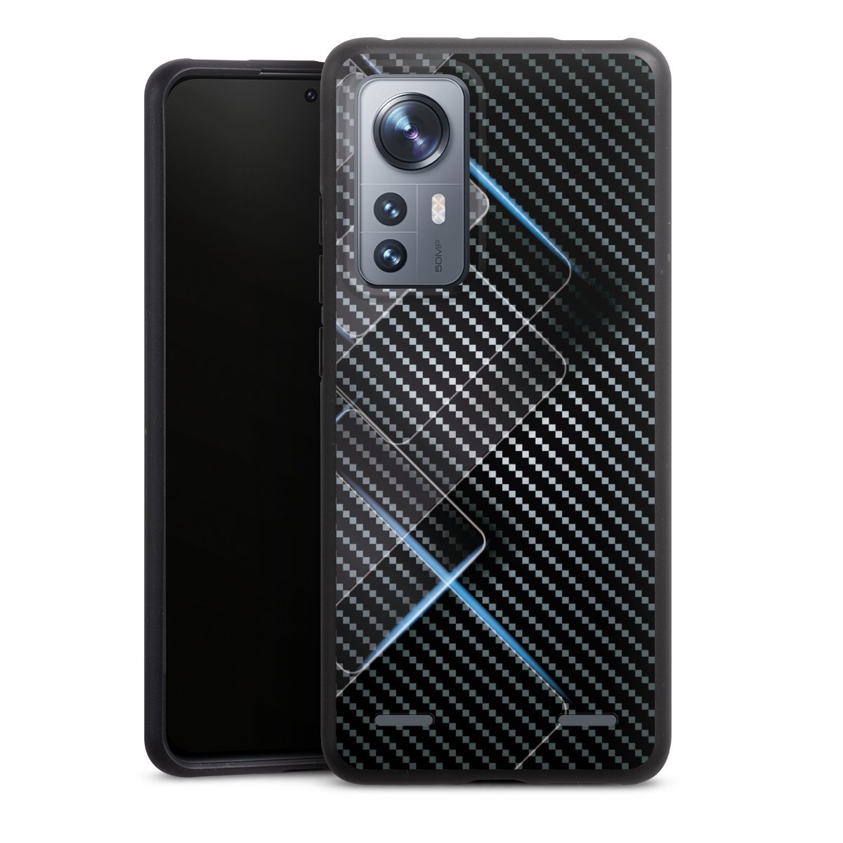 Blaue Linien auf Karbon