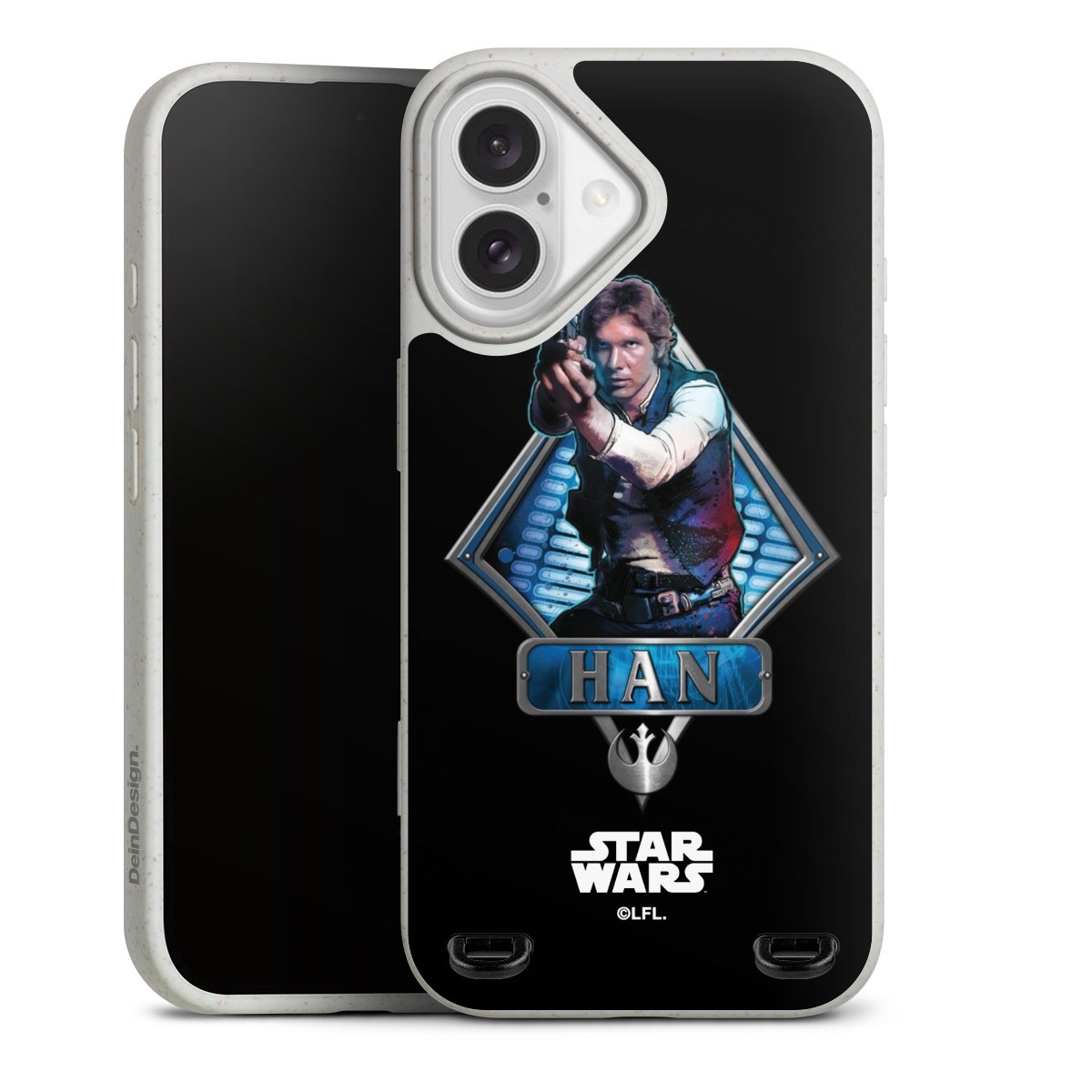 Darth Vader, C3PO, R2D2 und Meister Yoda findest Du in unserem Star Wars Shop auf DeinDesign. Natürlich gibt es auch Star Wars Handyhüllen mit den legendären Charakteren Luke Skywalker, Prinzessin Leia und Han Solo, den Helden der ersten Saga. Wer jedoch die Hauptfiguren der neuen Star Wars Filme ins Herz geschlossen hat, kann auch Finn und Rey mit ihren mächtigen Waffen auf der Rückseite seines Smartphones haben. Die vielseitigen Schutzhüllen in verschiedenen Ausführungen sind das perfekte Geschenk für alle Star Wars Fans, die ihrem Smartphone eine individuelle Note verleihen wollen.
