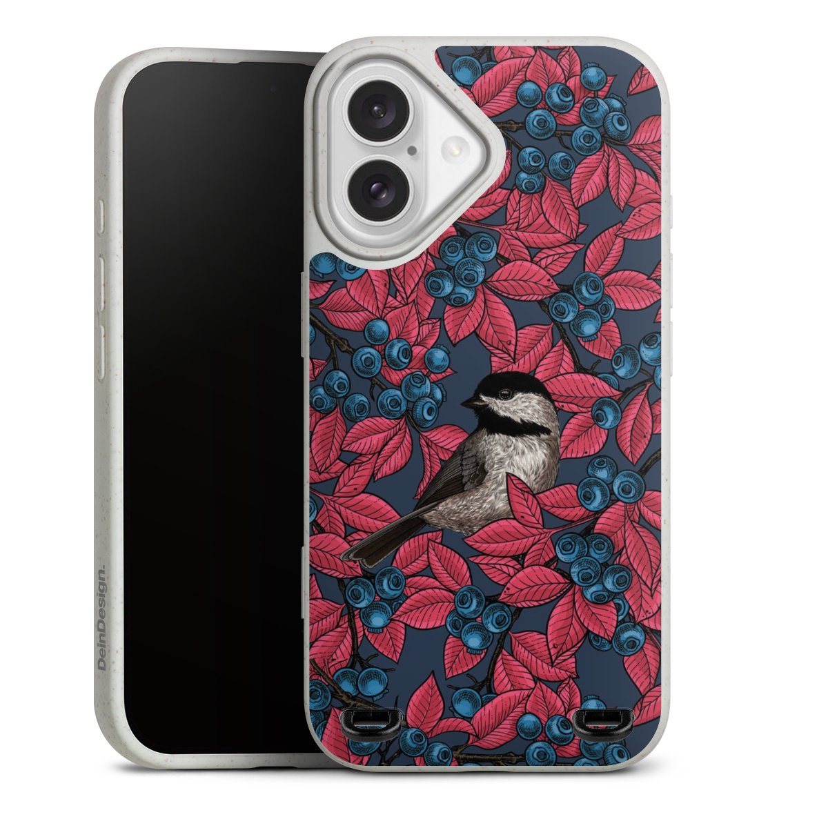 Blaubeeren und Vögel auf Navy