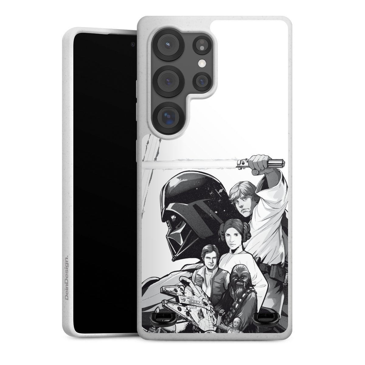 Darth Vader, C3PO, R2D2 und Meister Yoda findest Du in unserem Star Wars Shop auf DeinDesign. Natürlich gibt es auch Star Wars Handyhüllen mit den legendären Charakteren Luke Skywalker, Prinzessin Leia und Han Solo, den Helden der ersten Saga. Wer jedoch die Hauptfiguren der neuen Star Wars Filme ins Herz geschlossen hat, kann auch Finn und Rey mit ihren mächtigen Waffen auf der Rückseite seines Smartphones haben. Die vielseitigen Schutzhüllen in verschiedenen Ausführungen sind das perfekte Geschenk für alle Star Wars Fans, die ihrem Smartphone eine individuelle Note verleihen wollen.