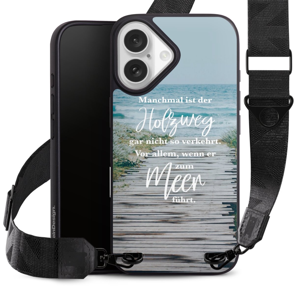 Die mit Holzspänen verstärkte Hülle aus Bio-Kunststoff schützt Dein Handy vor Stößen, Kratzern und Schmutz. Dank des Tragegurts hast Du die Hände frei und Dein Handy trotzdem immer sicher nah am Körper.