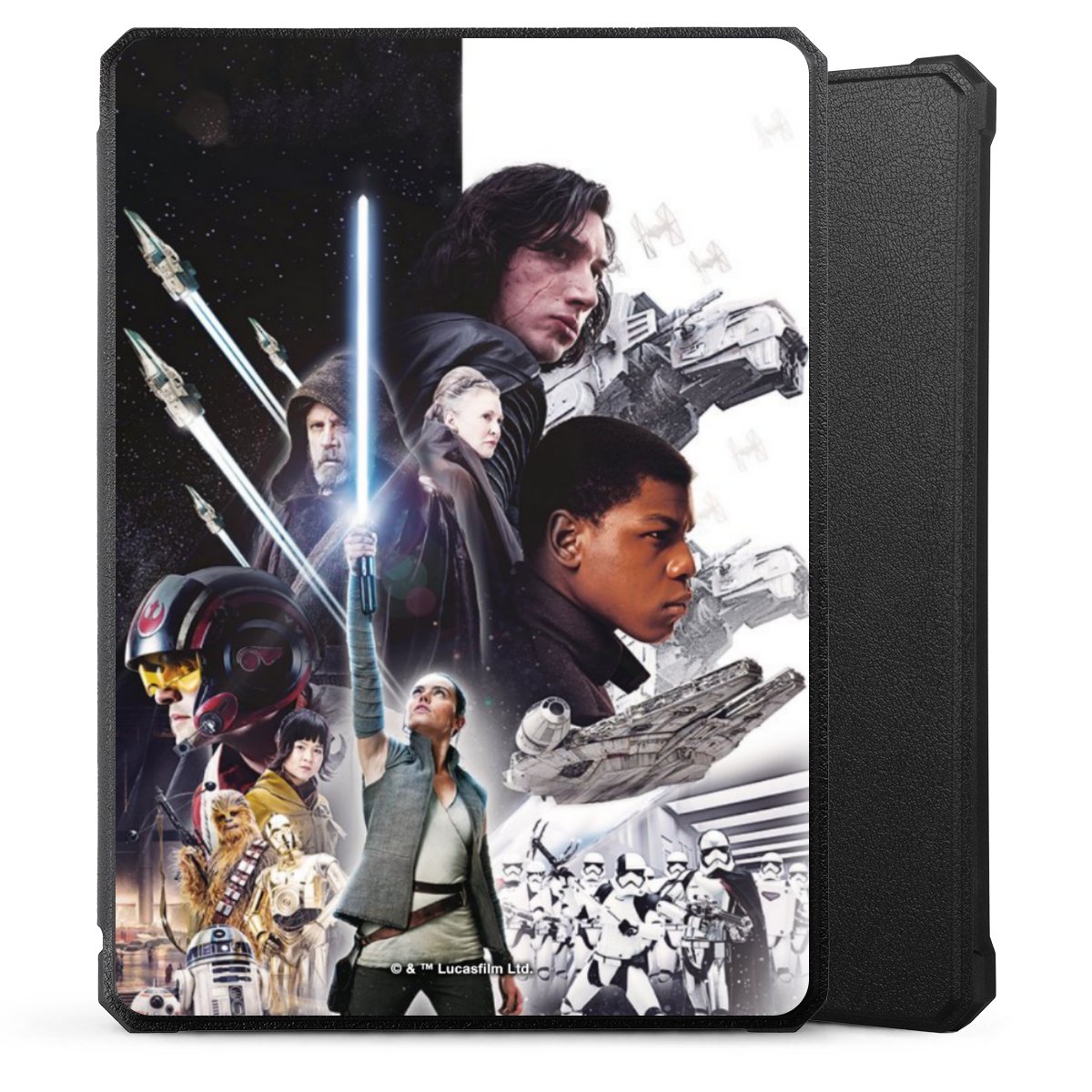 Darth Vader, C3PO, R2D2 und Meister Yoda findest Du in unserem Star Wars Shop auf DeinDesign. Natürlich gibt es auch Star Wars Handyhüllen mit den legendären Charakteren Luke Skywalker, Prinzessin Leia und Han Solo, den Helden der ersten Saga. Wer jedoch die Hauptfiguren der neuen Star Wars Filme ins Herz geschlossen hat, kann auch Finn und Rey mit ihren mächtigen Waffen auf der Rückseite seines Smartphones haben. Die vielseitigen Schutzhüllen in verschiedenen Ausführungen sind das perfekte Geschenk für alle Star Wars Fans, die ihrem Smartphone eine individuelle Note verleihen wollen.