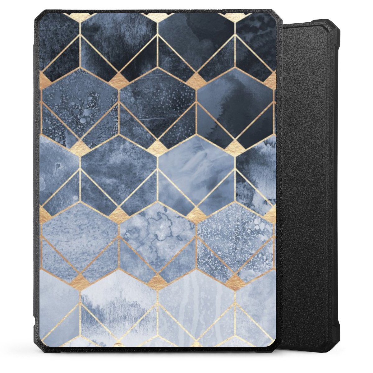 Blaue Sechsecke und Diamanten Golddruck