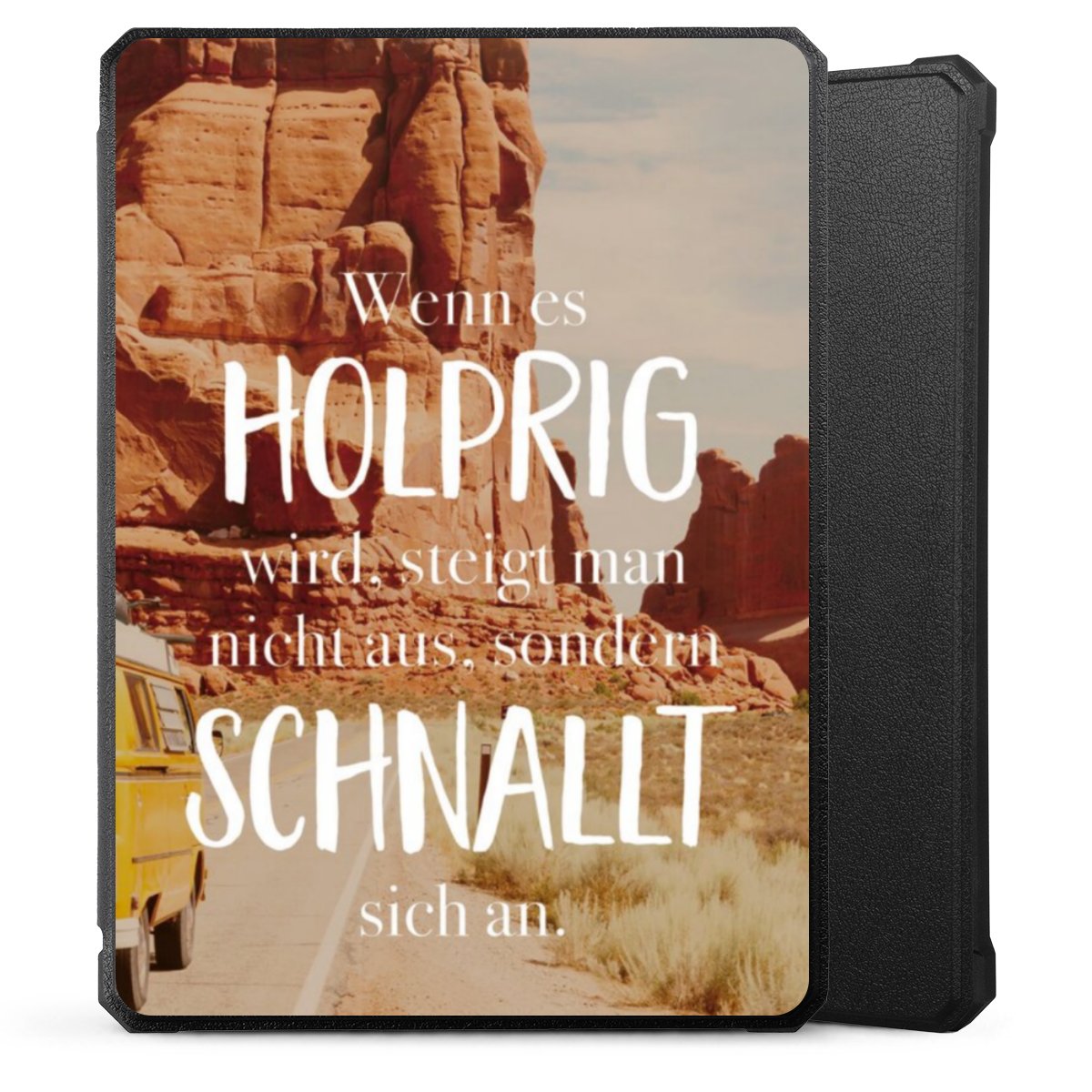 Die praktische Hülle schützt Deinen E-Reader auf der Vorder- und Rückseite durch hochwertiges und veganes Skai®-Kunstleder. Innen befindet sich eine robuste Polycarbonat Schale, zusätzlich ist die Innenseite der Hülle mit weicher Mikrofaser gefüttert, um Dein Gerät noch besser zu schützen. Durch das flexible Flip Cover ist der Bildschirm Deines E-Reader sicher vor Kratzern und Stößen. Die Hülle ist in der Farbe Schwarz erhältlich.