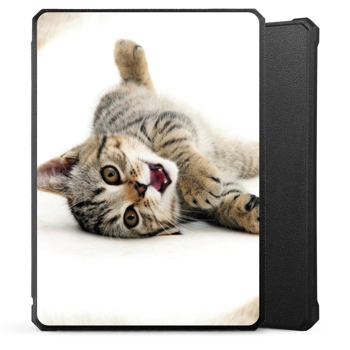 Die praktische Hülle schützt Deinen E-Reader auf der Vorder- und Rückseite durch hochwertiges und veganes Skai®-Kunstleder. Innen befindet sich eine robuste Polycarbonat Schale, zusätzlich ist die Innenseite der Hülle mit weicher Mikrofaser gefüttert, um Dein Gerät noch besser zu schützen. Durch das flexible Flip Cover ist der Bildschirm Deines E-Reader sicher vor Kratzern und Stößen. Die Hülle ist in der Farbe Schwarz erhältlich.