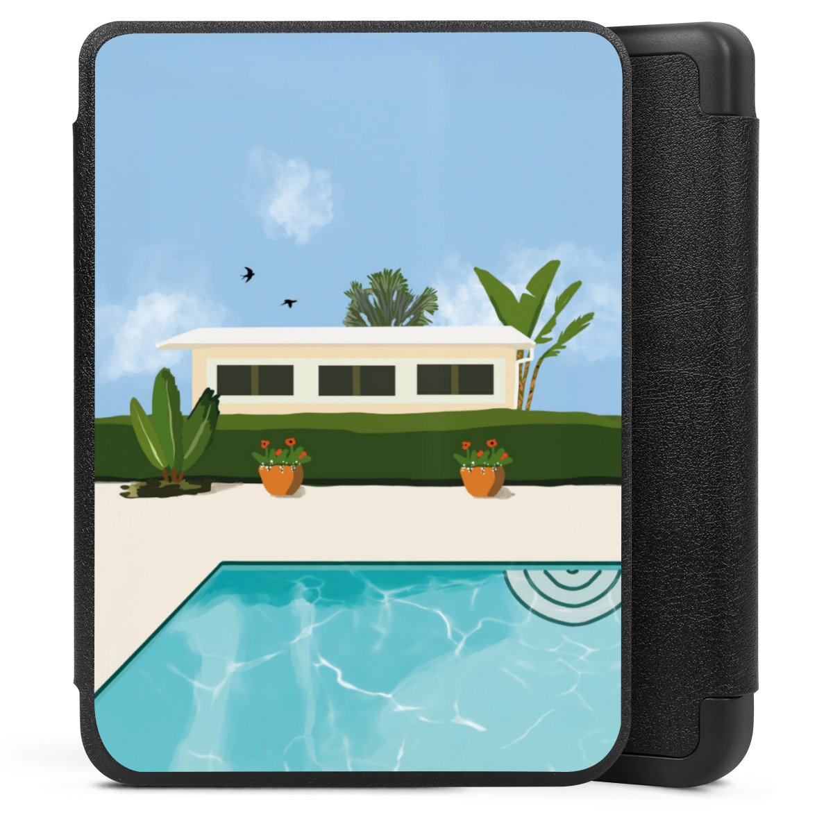 Die praktische Hülle schützt Deinen E-Reader auf der Vorder- und Rückseite durch hochwertiges und veganes Skai®-Kunstleder. Innen befindet sich eine robuste Polycarbonat Schale, zusätzlich ist die Innenseite der Hülle mit weicher Mikrofaser gefüttert, um Dein Gerät noch besser zu schützen. Durch das flexible Flip Cover ist der Bildschirm Deines E-Reader sicher vor Kratzern und Stößen. Die Hülle ist in der Farbe Schwarz erhältlich.