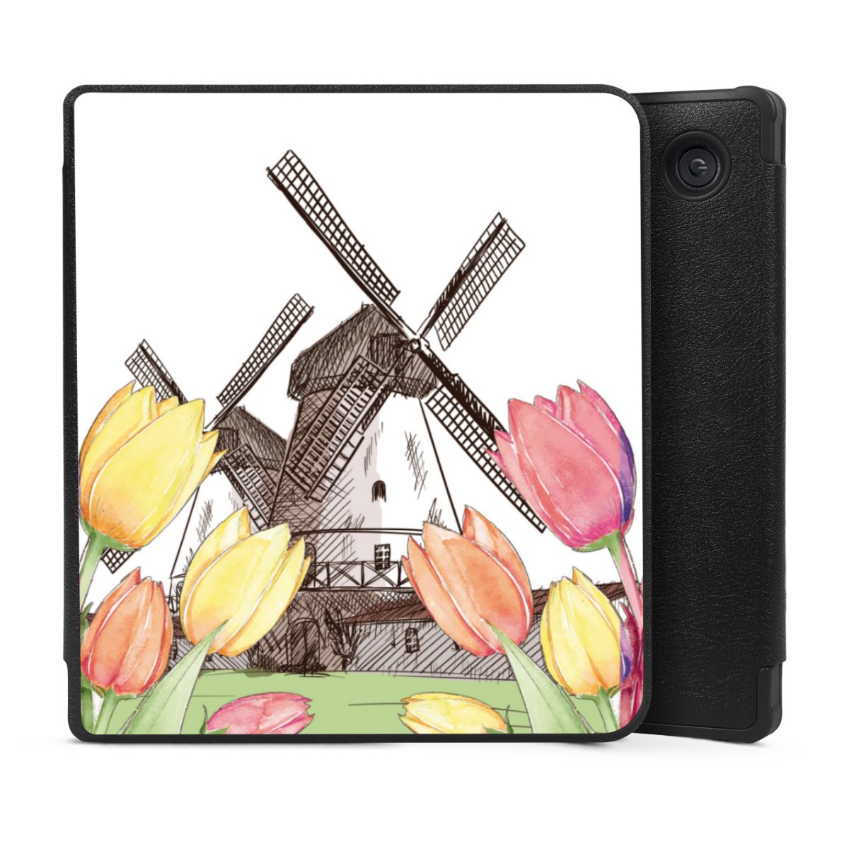 Die praktische Hülle schützt Deinen E-Reader auf der Vorder- und Rückseite durch hochwertiges und veganes Skai®-Kunstleder. Innen befindet sich eine robuste Polycarbonat Schale, zusätzlich ist die Innenseite der Hülle mit weicher Mikrofaser gefüttert, um Dein Gerät noch besser zu schützen. Durch das flexible Flip Cover ist der Bildschirm Deines E-Reader sicher vor Kratzern und Stößen. Die Hülle ist in der Farbe Schwarz erhältlich.