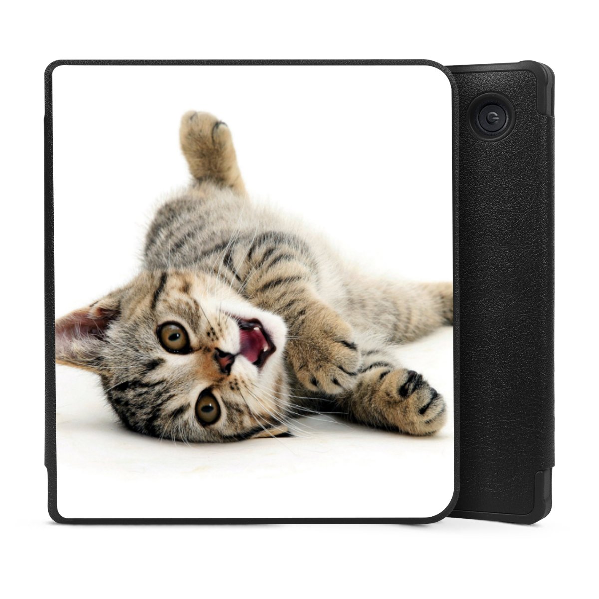 Die praktische Hülle schützt Deinen E-Reader auf der Vorder- und Rückseite durch hochwertiges und veganes Skai®-Kunstleder. Innen befindet sich eine robuste Polycarbonat Schale, zusätzlich ist die Innenseite der Hülle mit weicher Mikrofaser gefüttert, um Dein Gerät noch besser zu schützen. Durch das flexible Flip Cover ist der Bildschirm Deines E-Reader sicher vor Kratzern und Stößen. Die Hülle ist in der Farbe Schwarz erhältlich.