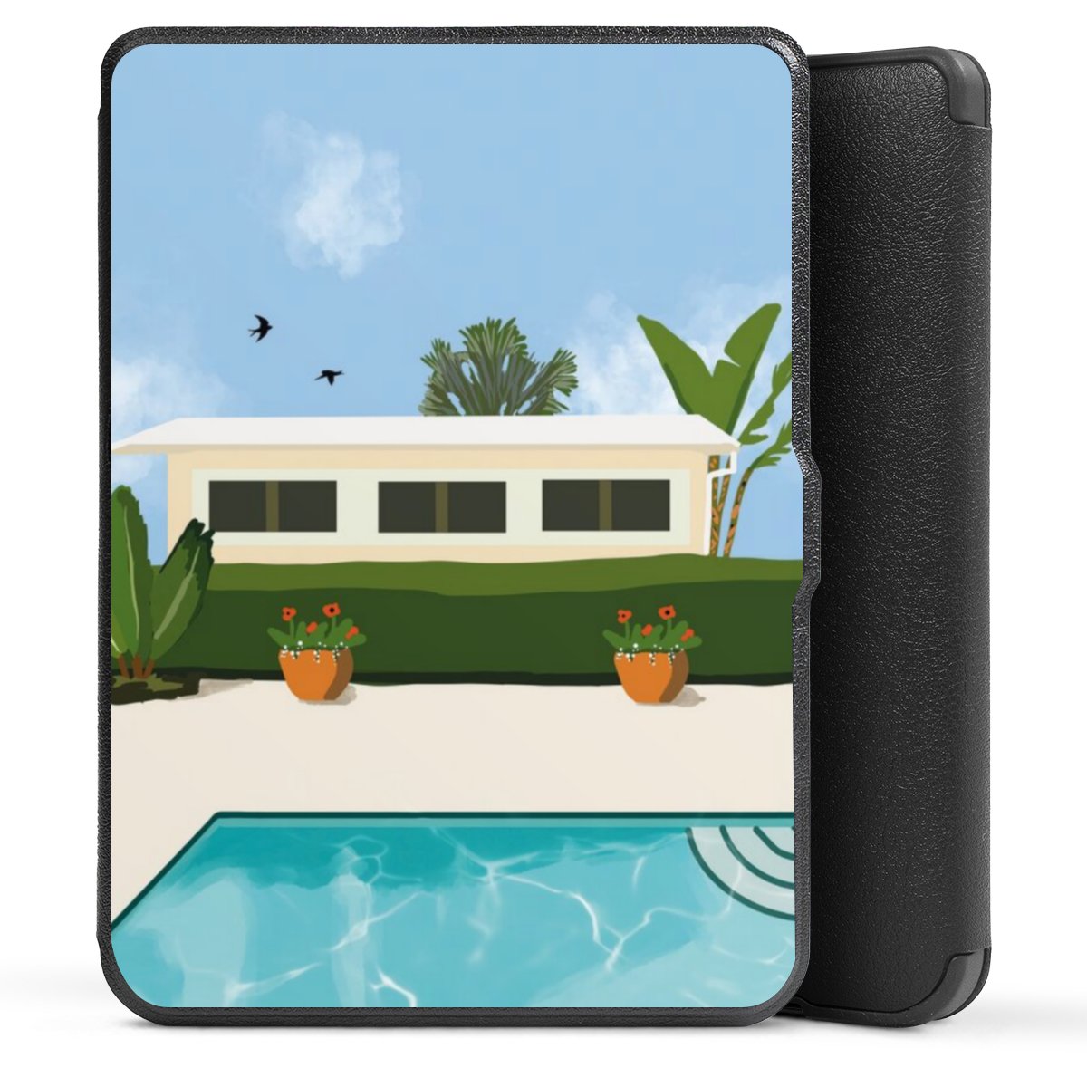 Die praktische Hülle schützt Deinen E-Reader auf der Vorder- und Rückseite durch hochwertiges und veganes Skai®-Kunstleder. Innen befindet sich eine robuste Polycarbonat Schale, zusätzlich ist die Innenseite der Hülle mit weicher Mikrofaser gefüttert, um Dein Gerät noch besser zu schützen. Durch das flexible Flip Cover ist der Bildschirm Deines E-Reader sicher vor Kratzern und Stößen. Die Hülle ist in der Farbe Schwarz erhältlich.