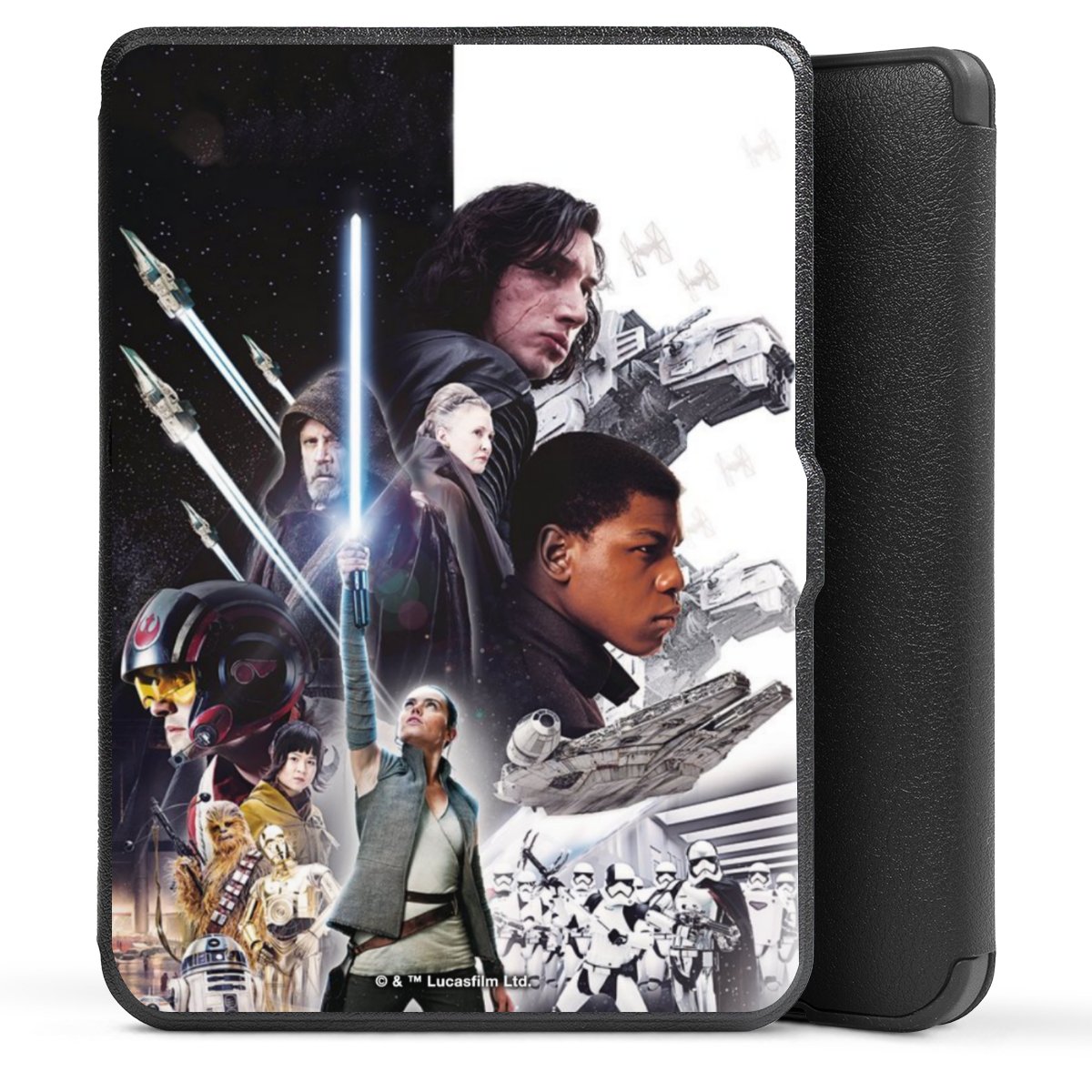 Darth Vader, C3PO, R2D2 und Meister Yoda findest Du in unserem Star Wars Shop auf DeinDesign. Natürlich gibt es auch Star Wars Handyhüllen mit den legendären Charakteren Luke Skywalker, Prinzessin Leia und Han Solo, den Helden der ersten Saga. Wer jedoch die Hauptfiguren der neuen Star Wars Filme ins Herz geschlossen hat, kann auch Finn und Rey mit ihren mächtigen Waffen auf der Rückseite seines Smartphones haben. Die vielseitigen Schutzhüllen in verschiedenen Ausführungen sind das perfekte Geschenk für alle Star Wars Fans, die ihrem Smartphone eine individuelle Note verleihen wollen.