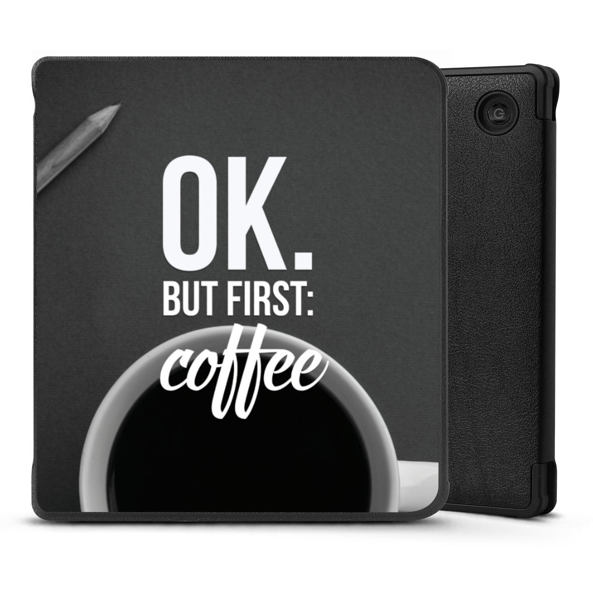 Die praktische Hülle schützt Deinen E-Reader auf der Vorder- und Rückseite durch hochwertiges und veganes Skai®-Kunstleder. Innen befindet sich eine robuste Polycarbonat Schale, zusätzlich ist die Innenseite der Hülle mit weicher Mikrofaser gefüttert, um Dein Gerät noch besser zu schützen. Durch das flexible Flip Cover ist der Bildschirm Deines E-Reader sicher vor Kratzern und Stößen. Die Hülle ist in der Farbe Schwarz erhältlich.