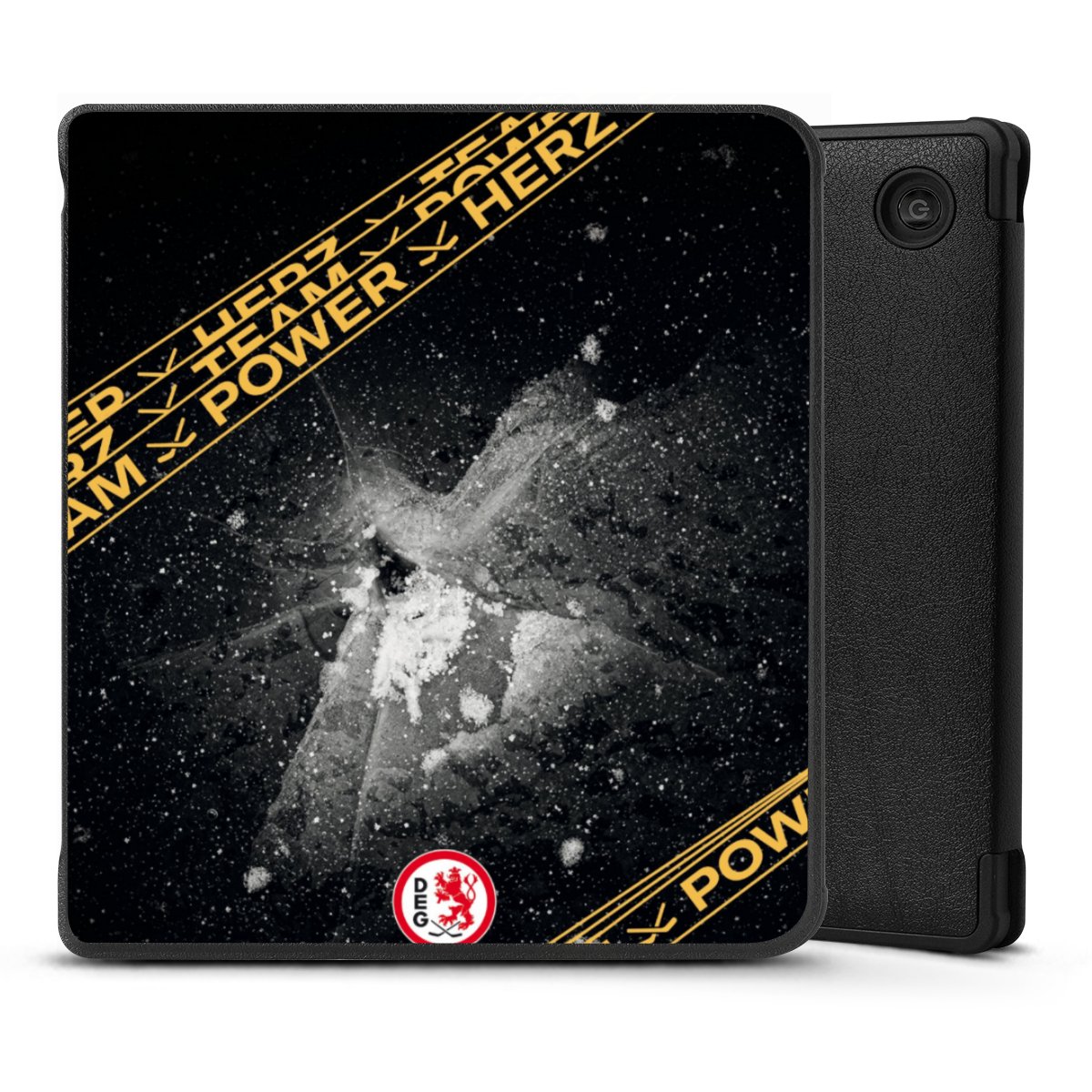 Die praktische Hülle schützt Deinen E-Reader auf der Vorder- und Rückseite durch hochwertiges und veganes Skai®-Kunstleder. Innen befindet sich eine robuste Polycarbonat Schale, zusätzlich ist die Innenseite der Hülle mit weicher Mikrofaser gefüttert, um Dein Gerät noch besser zu schützen. Durch das flexible Flip Cover ist der Bildschirm Deines E-Reader sicher vor Kratzern und Stößen. Die Hülle ist in der Farbe Schwarz erhältlich.