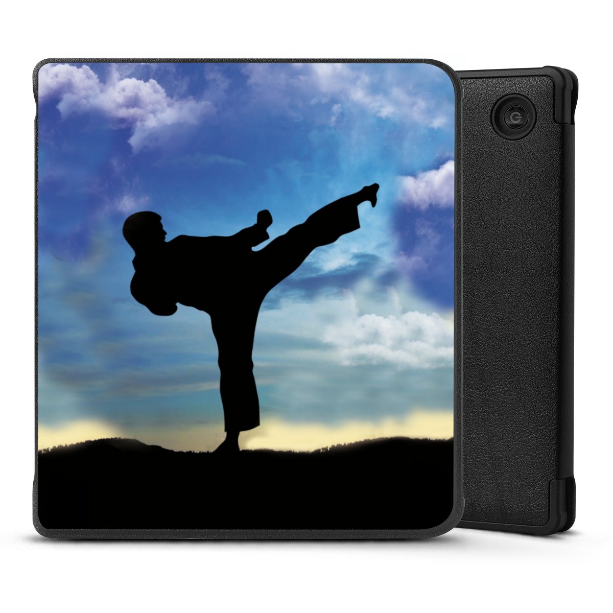Die praktische Hülle schützt Deinen E-Reader auf der Vorder- und Rückseite durch hochwertiges und veganes Skai®-Kunstleder. Innen befindet sich eine robuste Polycarbonat Schale, zusätzlich ist die Innenseite der Hülle mit weicher Mikrofaser gefüttert, um Dein Gerät noch besser zu schützen. Durch das flexible Flip Cover ist der Bildschirm Deines E-Reader sicher vor Kratzern und Stößen. Die Hülle ist in der Farbe Schwarz erhältlich.