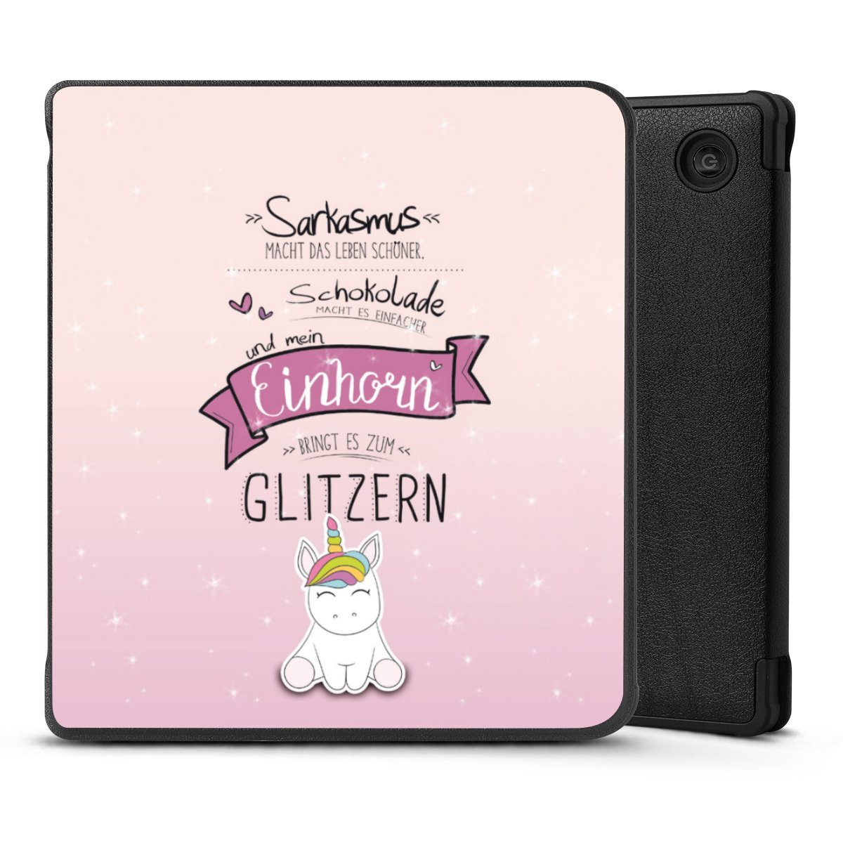 Die praktische Hülle schützt Deinen E-Reader auf der Vorder- und Rückseite durch hochwertiges und veganes Skai®-Kunstleder. Innen befindet sich eine robuste Polycarbonat Schale, zusätzlich ist die Innenseite der Hülle mit weicher Mikrofaser gefüttert, um Dein Gerät noch besser zu schützen. Durch das flexible Flip Cover ist der Bildschirm Deines E-Reader sicher vor Kratzern und Stößen. Die Hülle ist in der Farbe Schwarz erhältlich.