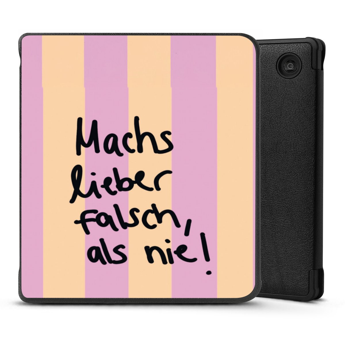 Die praktische Hülle schützt Deinen E-Reader auf der Vorder- und Rückseite durch hochwertiges und veganes Skai®-Kunstleder. Innen befindet sich eine robuste Polycarbonat Schale, zusätzlich ist die Innenseite der Hülle mit weicher Mikrofaser gefüttert, um Dein Gerät noch besser zu schützen. Durch das flexible Flip Cover ist der Bildschirm Deines E-Reader sicher vor Kratzern und Stößen. Die Hülle ist in der Farbe Schwarz erhältlich.