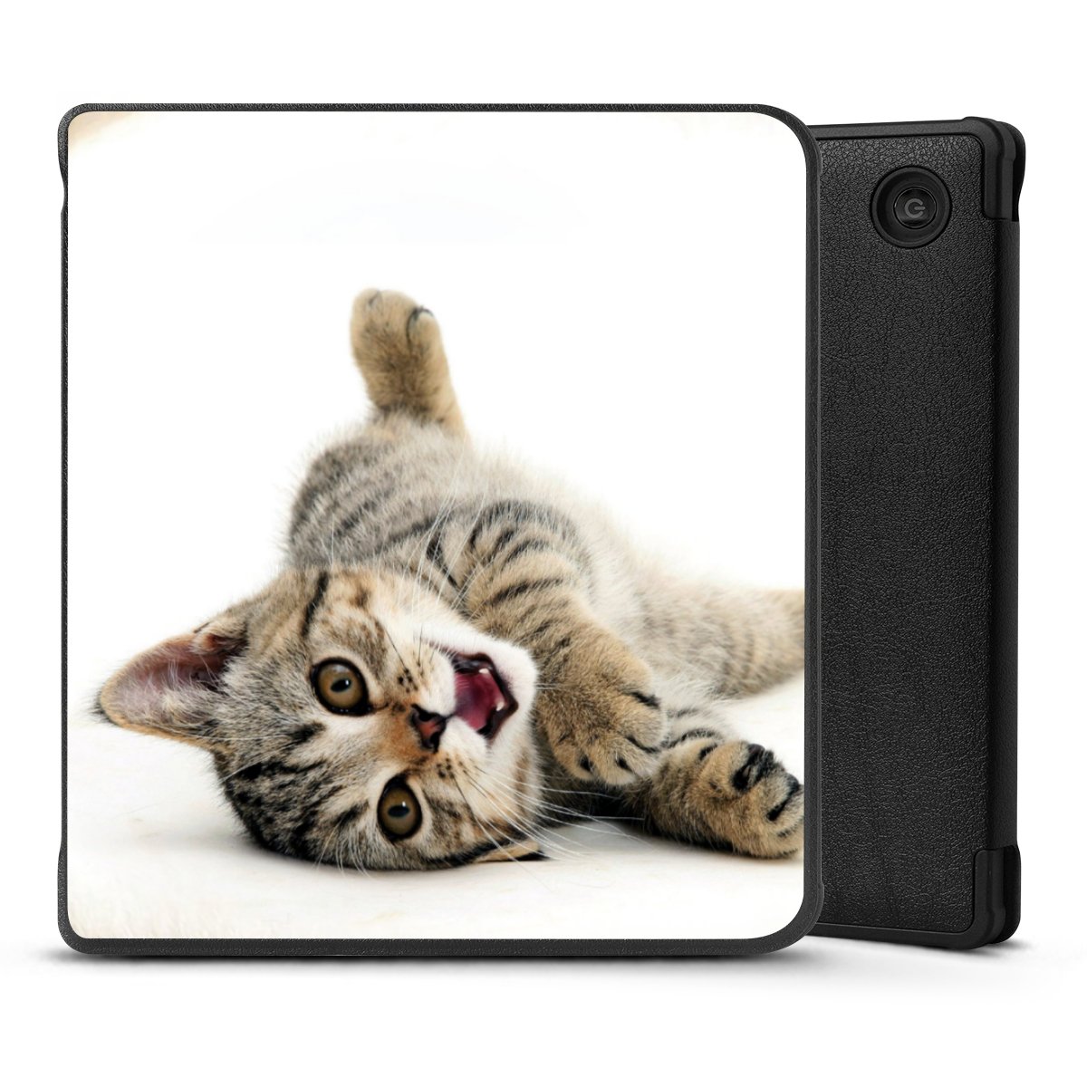 Die praktische Hülle schützt Deinen E-Reader auf der Vorder- und Rückseite durch hochwertiges und veganes Skai®-Kunstleder. Innen befindet sich eine robuste Polycarbonat Schale, zusätzlich ist die Innenseite der Hülle mit weicher Mikrofaser gefüttert, um Dein Gerät noch besser zu schützen. Durch das flexible Flip Cover ist der Bildschirm Deines E-Reader sicher vor Kratzern und Stößen. Die Hülle ist in der Farbe Schwarz erhältlich.
