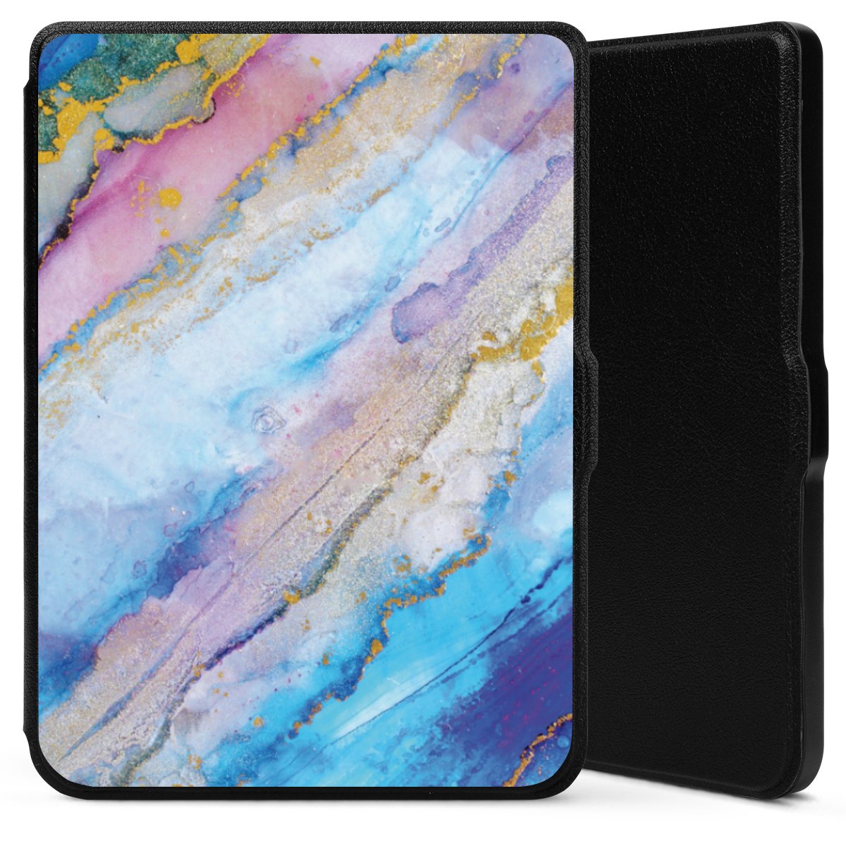 Die praktische Hülle schützt Deinen E-Reader auf der Vorder- und Rückseite durch hochwertiges und veganes Skai®-Kunstleder. Innen befindet sich eine robuste Polycarbonat Schale, zusätzlich ist die Innenseite der Hülle mit weicher Mikrofaser gefüttert, um Dein Gerät noch besser zu schützen. Durch das flexible Flip Cover ist der Bildschirm Deines E-Reader sicher vor Kratzern und Stößen. Die Hülle ist in der Farbe Schwarz erhältlich.