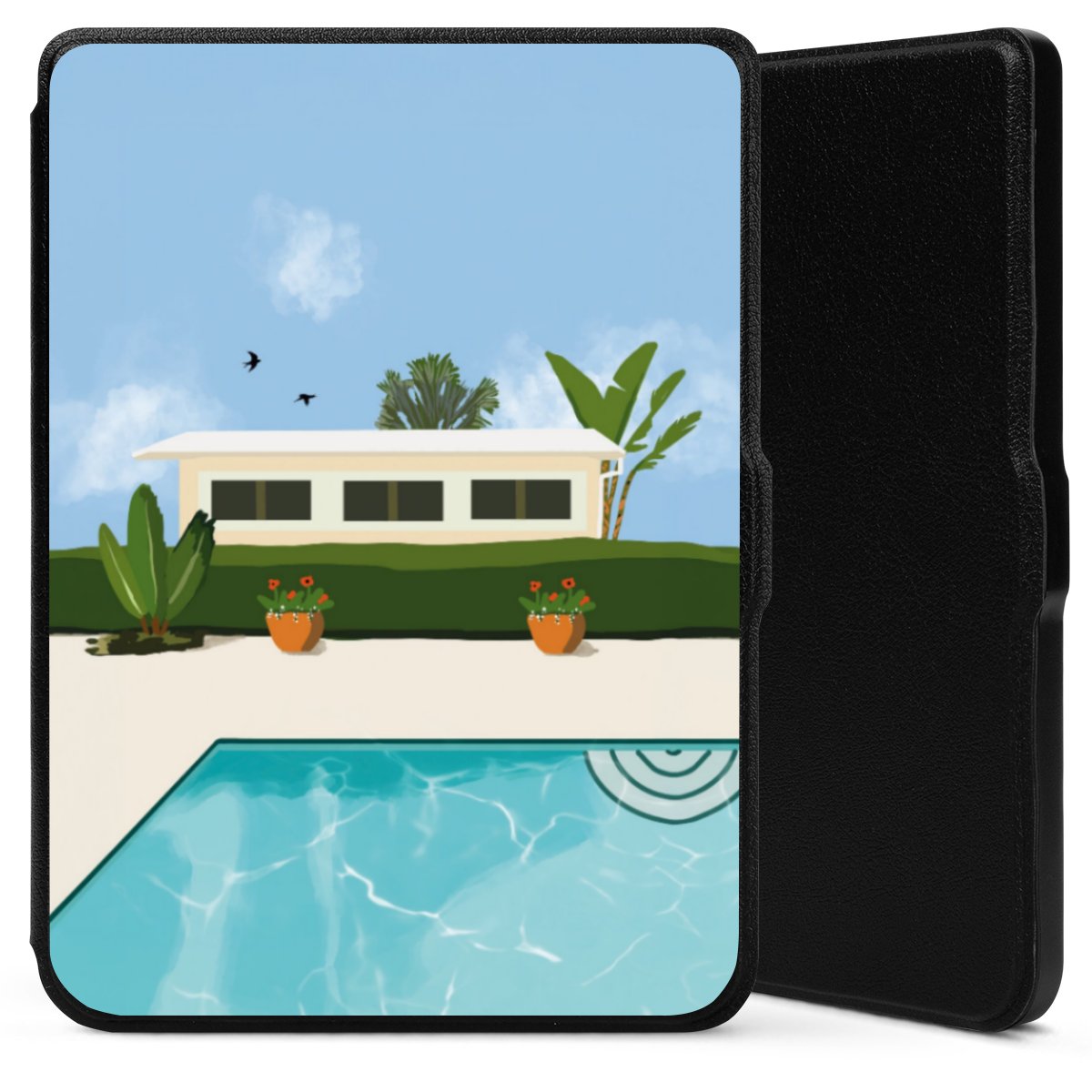 Die praktische Hülle schützt Deinen E-Reader auf der Vorder- und Rückseite durch hochwertiges und veganes Skai®-Kunstleder. Innen befindet sich eine robuste Polycarbonat Schale, zusätzlich ist die Innenseite der Hülle mit weicher Mikrofaser gefüttert, um Dein Gerät noch besser zu schützen. Durch das flexible Flip Cover ist der Bildschirm Deines E-Reader sicher vor Kratzern und Stößen. Die Hülle ist in der Farbe Schwarz erhältlich.