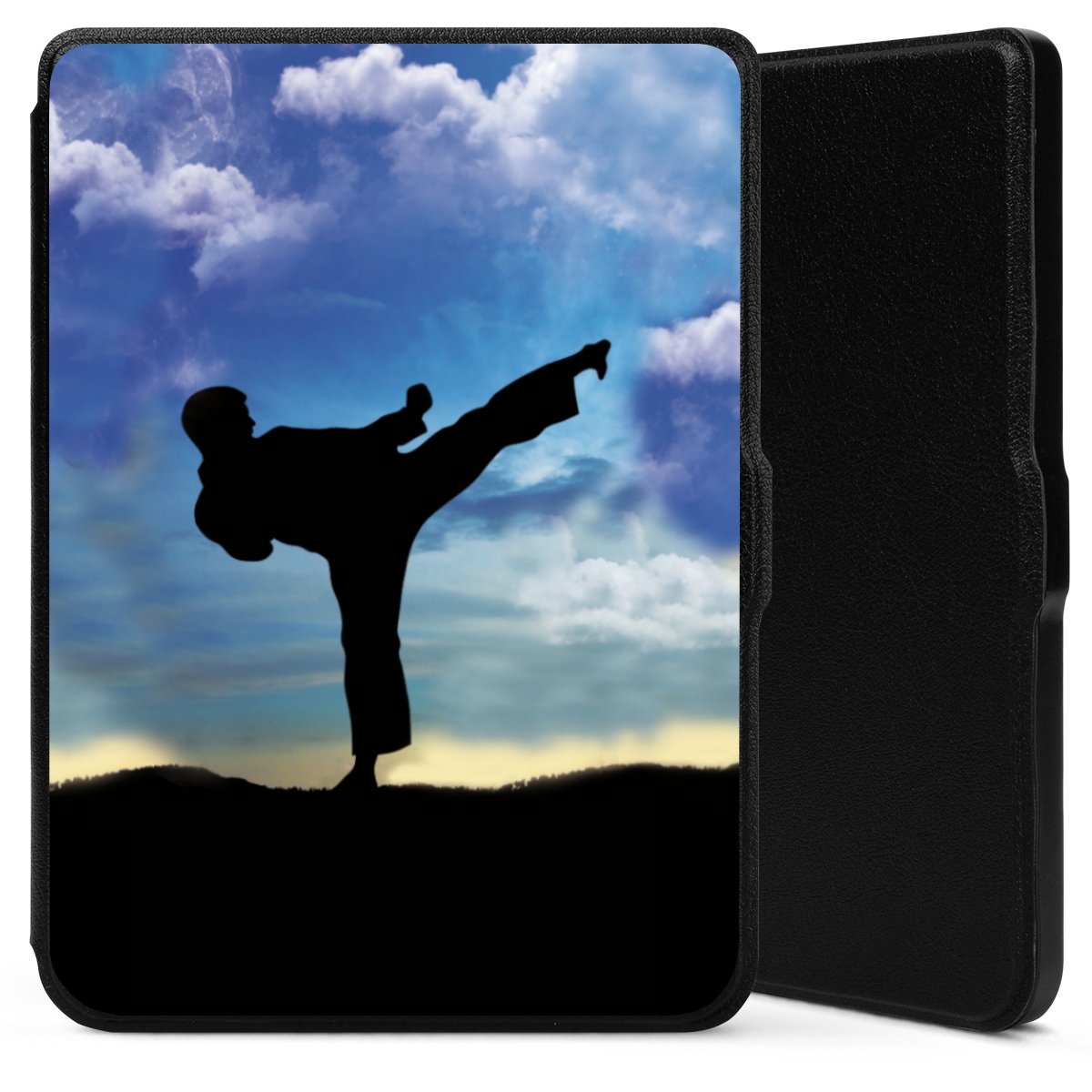 Die praktische Hülle schützt Deinen E-Reader auf der Vorder- und Rückseite durch hochwertiges und veganes Skai®-Kunstleder. Innen befindet sich eine robuste Polycarbonat Schale, zusätzlich ist die Innenseite der Hülle mit weicher Mikrofaser gefüttert, um Dein Gerät noch besser zu schützen. Durch das flexible Flip Cover ist der Bildschirm Deines E-Reader sicher vor Kratzern und Stößen. Die Hülle ist in der Farbe Schwarz erhältlich.