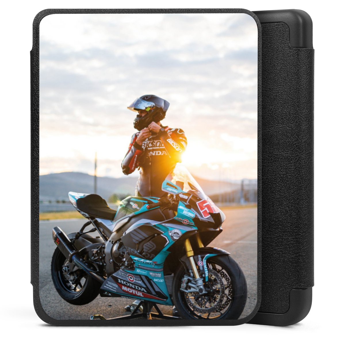Die praktische Hülle schützt Deinen E-Reader auf der Vorder- und Rückseite durch hochwertiges und veganes Skai®-Kunstleder. Innen befindet sich eine robuste Polycarbonat Schale, zusätzlich ist die Innenseite der Hülle mit weicher Mikrofaser gefüttert, um Dein Gerät noch besser zu schützen. Durch das flexible Flip Cover ist der Bildschirm Deines E-Reader sicher vor Kratzern und Stößen. Die Hülle ist in der Farbe Schwarz erhältlich.