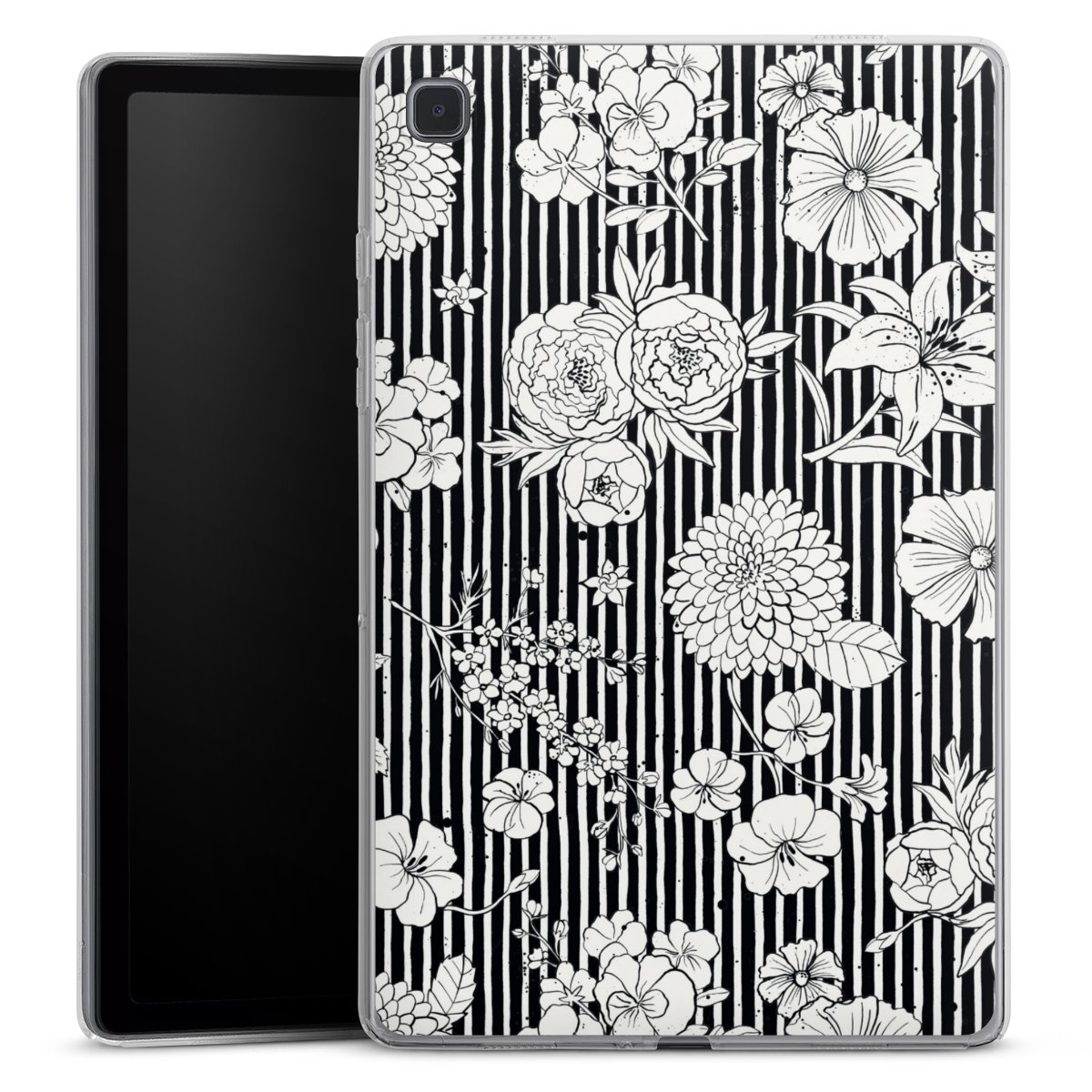 Blumen und Streifen Schwarz und Weiß