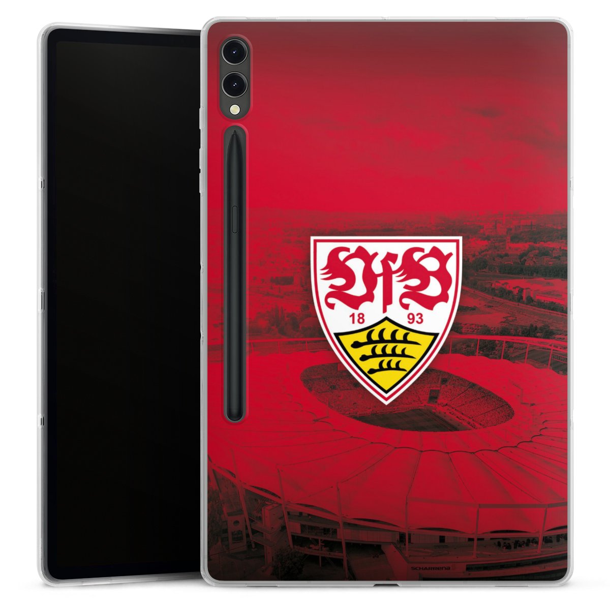 Das Vereinswappen des VfB Stuttgart auf der eigenen Hülle