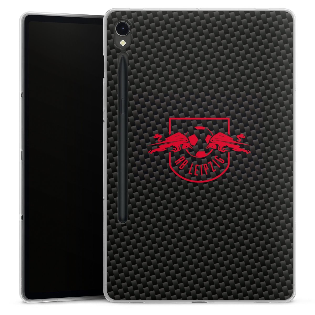 Rotes RB Leipzig Logo auf Carbonoptik
